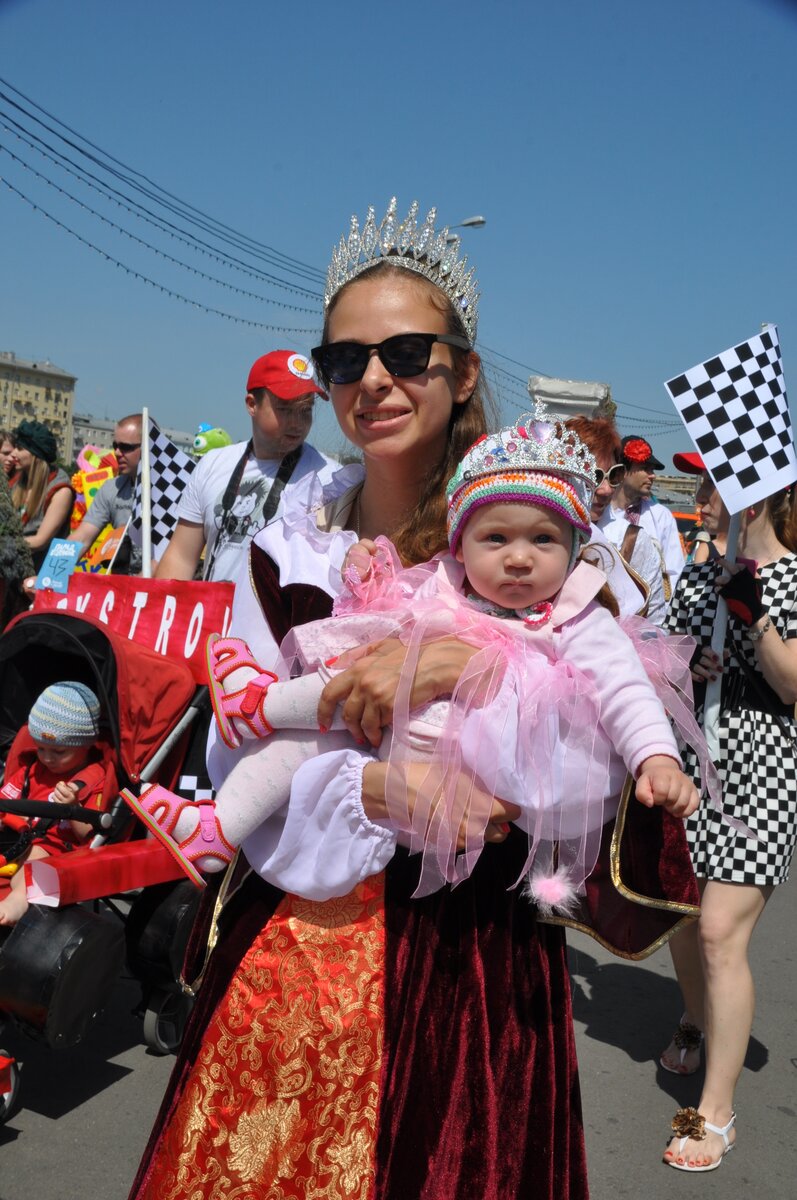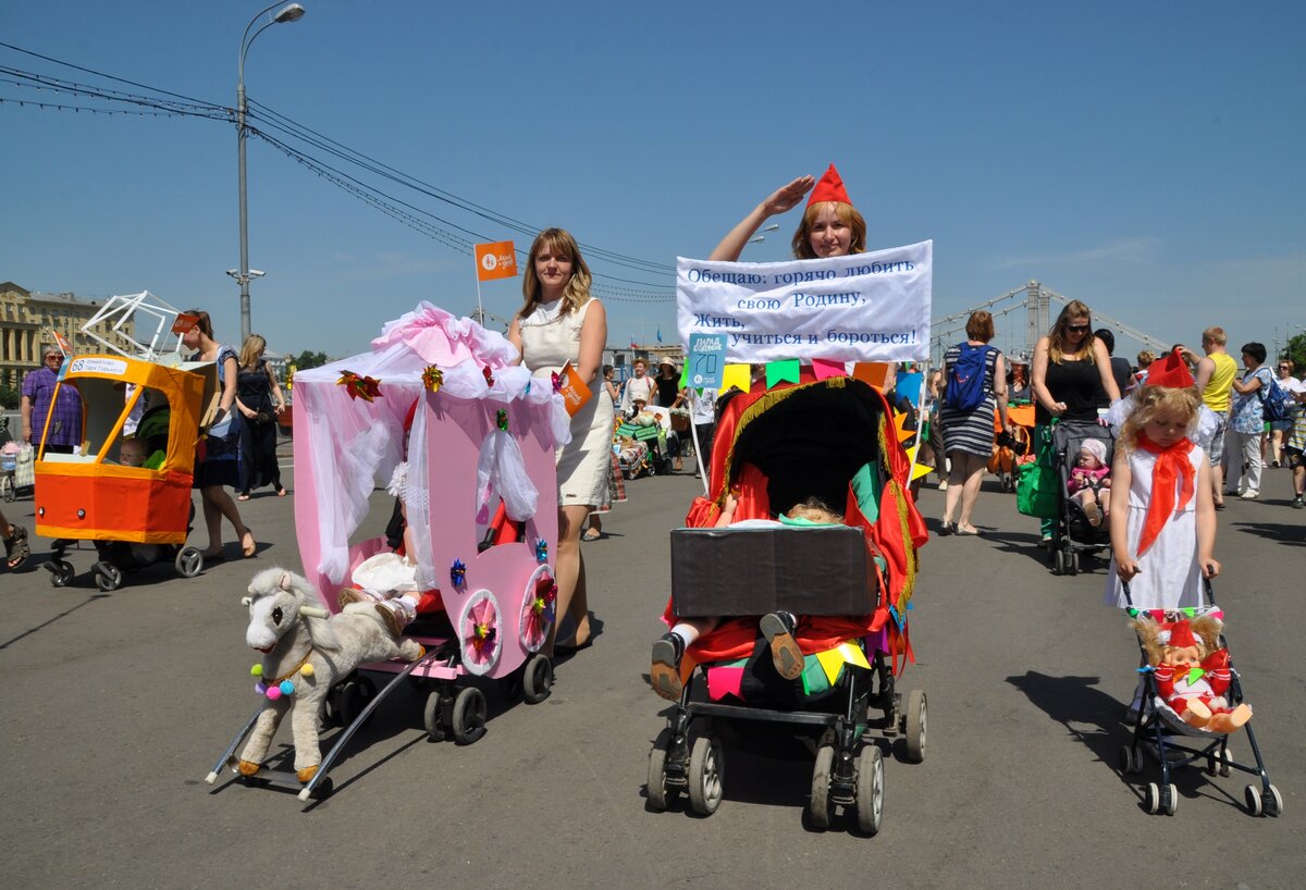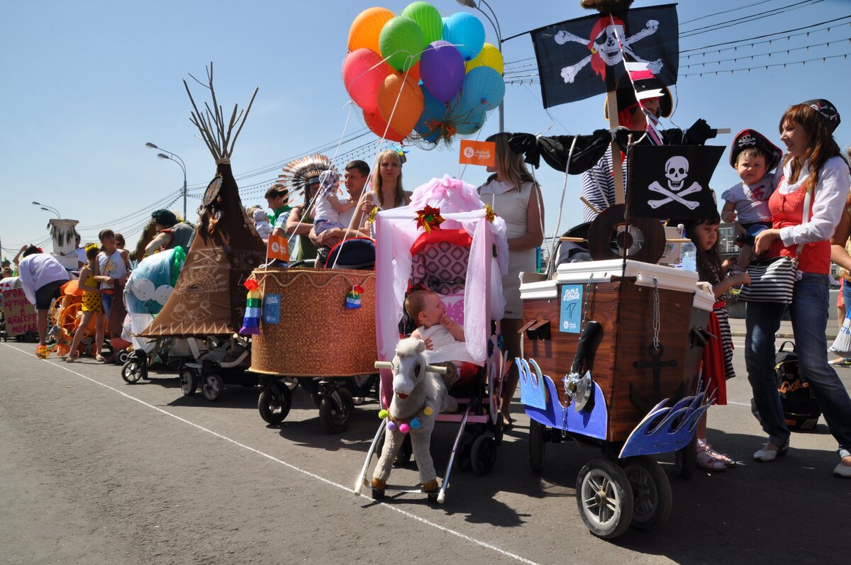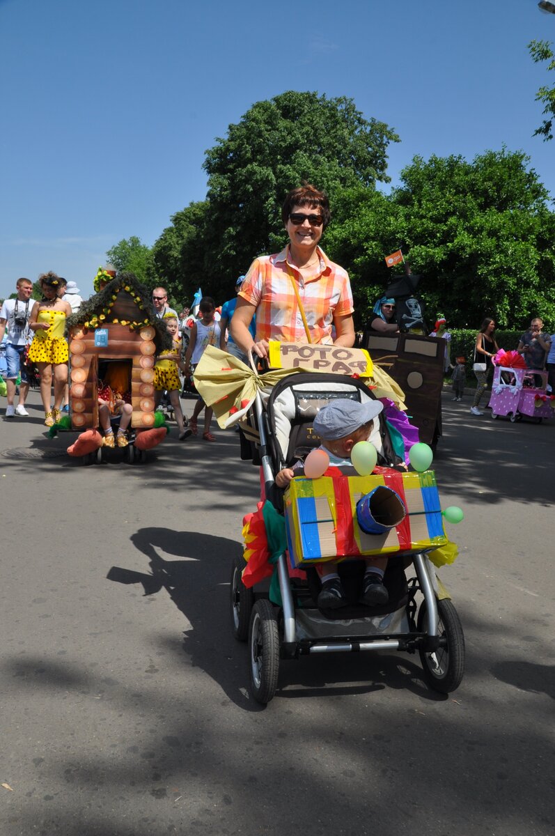 Парад колясок прошел в парке Горького в День защиты детей. Для участия в параде колясок нужно было зарегистрироваться на сайте и указать идею оформления своего детского транспорта. Всего было подано 114 заявок. Участники постарались, коляски получились смешными, красивыми и необычными. Дети ехали в космических кораблях, тыквах, вертолетах, троллейбусах и даже, как Емеля, на печи.