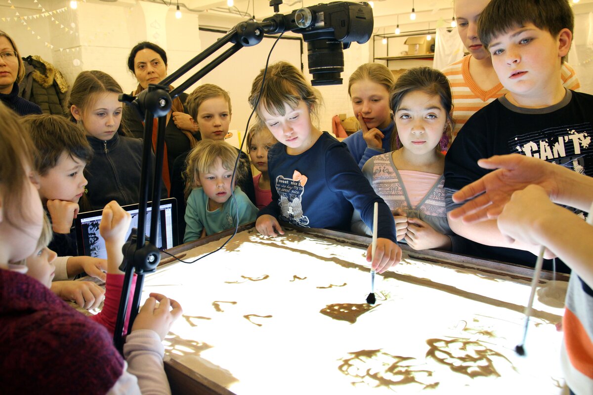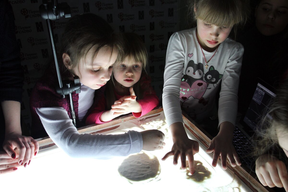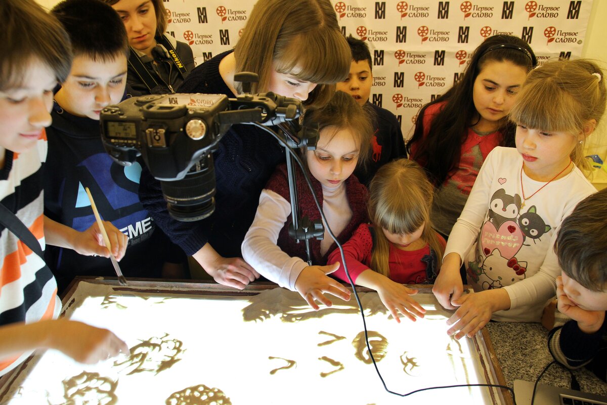 В детском центре музея Москвы прошел мастер-класс "Песочная анимация". Его провела организатор фестиваля "Первое слово" Юлия Фирсова. Детей научили работать с песком и создавать собственные волшебные истории на специальных экранах. После занятия ребятам показали мультфильм "Бееландия", снятый участником фестиваля киностудией Young&Films.