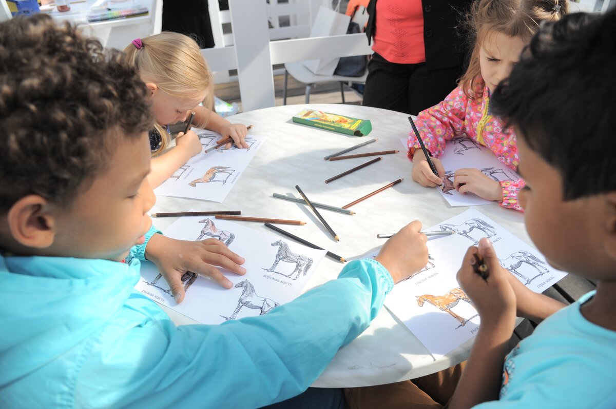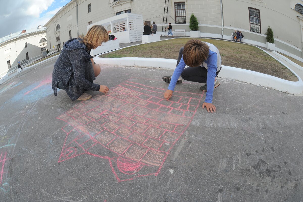 В Музее Москвы прошел детский фестиваль рисунков на асфальте. Юные москвичи под руководством опытных аниматоров мелками нарисовали десятки картин о любимом городе.