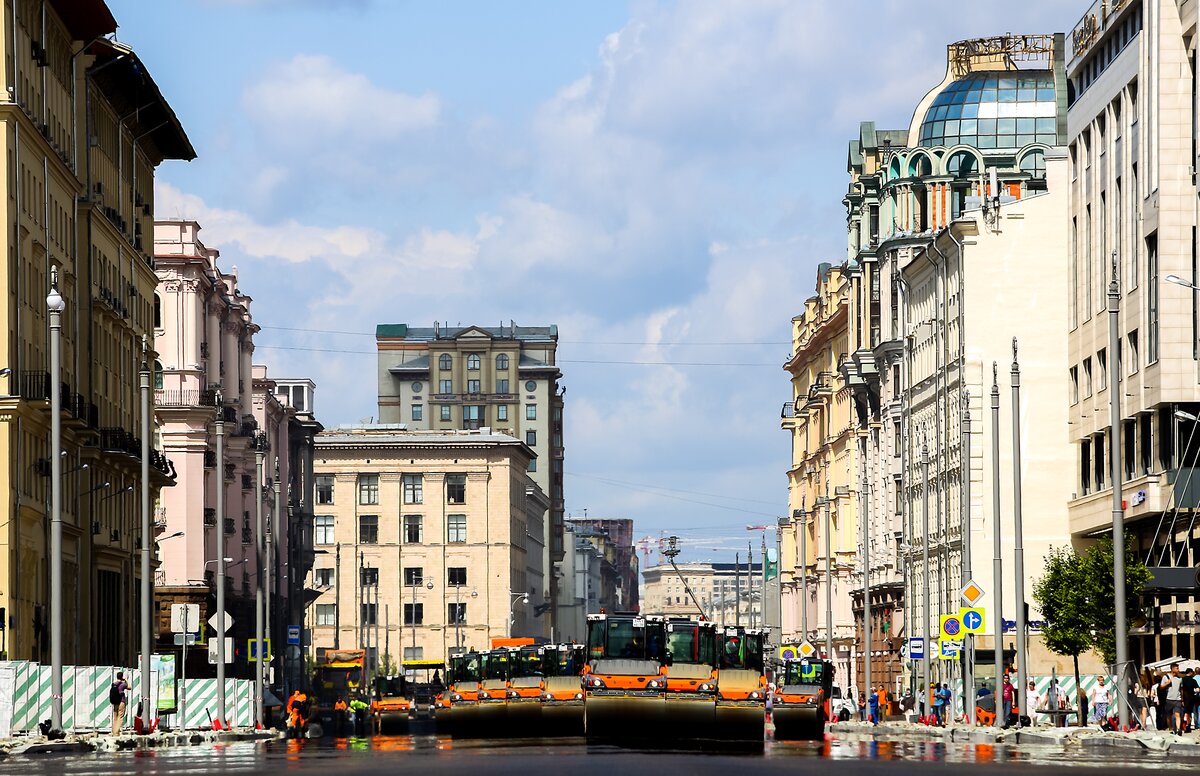 ГородНовый асфальт начали укладывать на Тверской улице