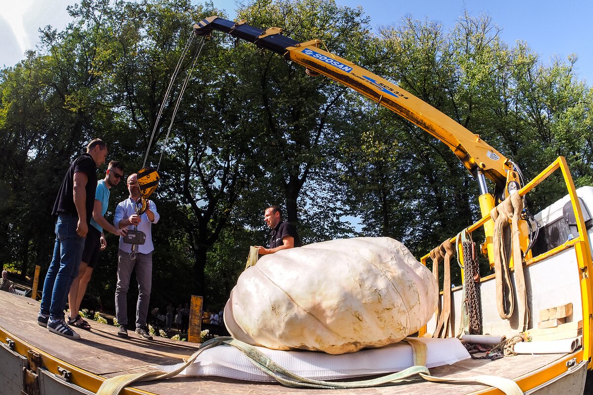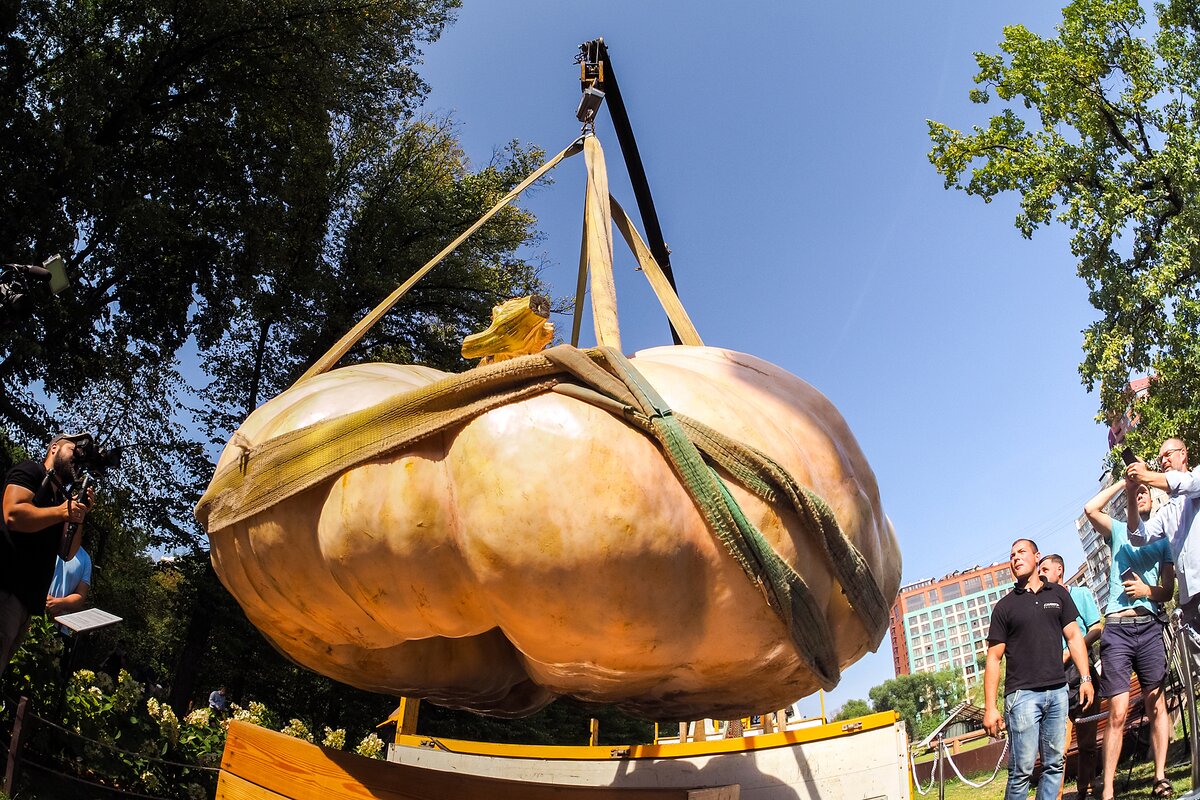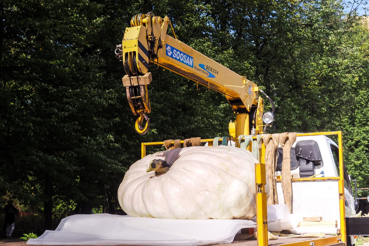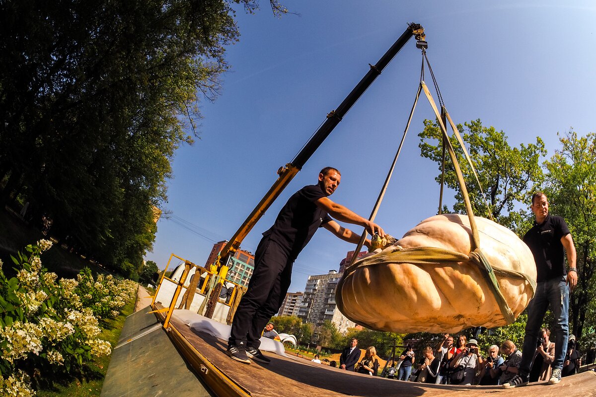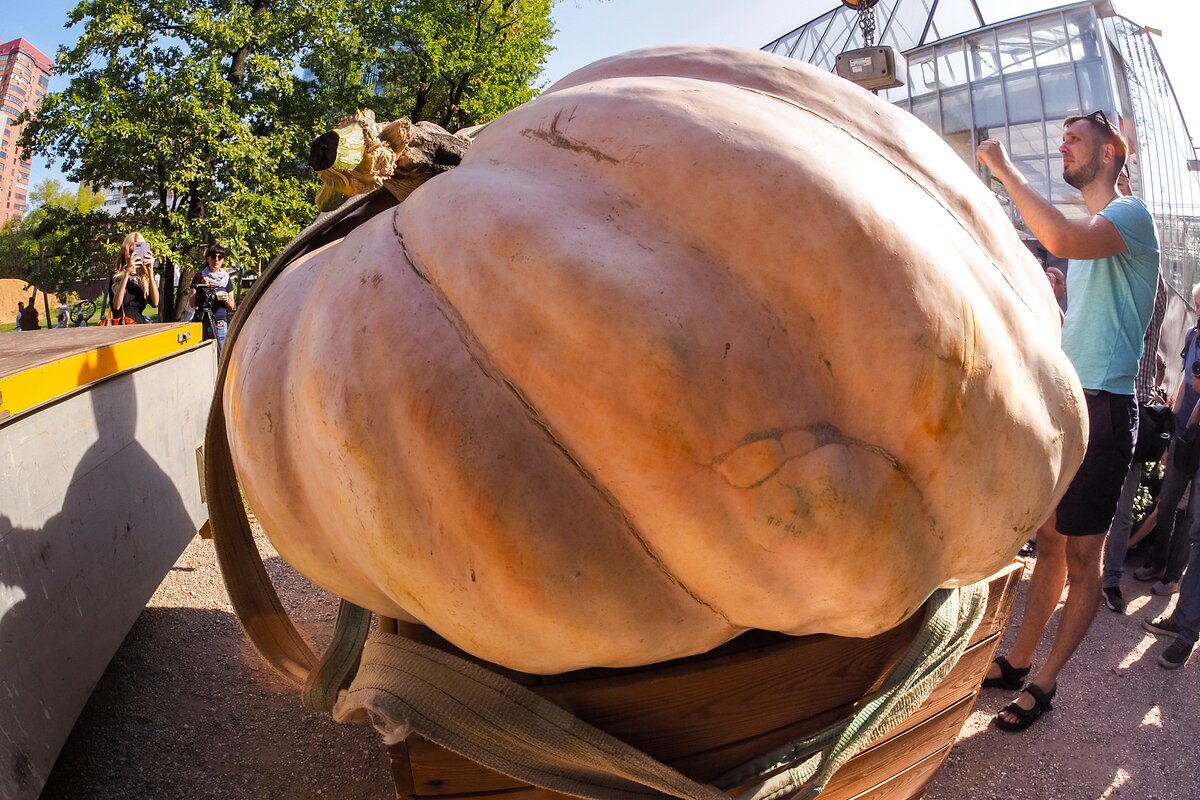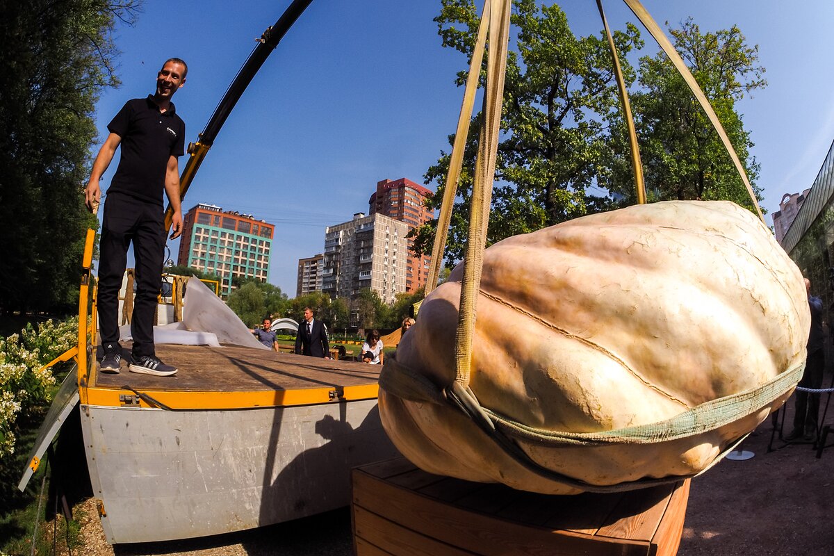 В среду, 5 сентября, в Ботанический сад МГУ "Аптекарский огород" привезли самую большую тыкву в России 1/9В среду, 5 сентября, в Ботанический сад МГУ "Аптекарский огород" привезли самую большую тыкву в России