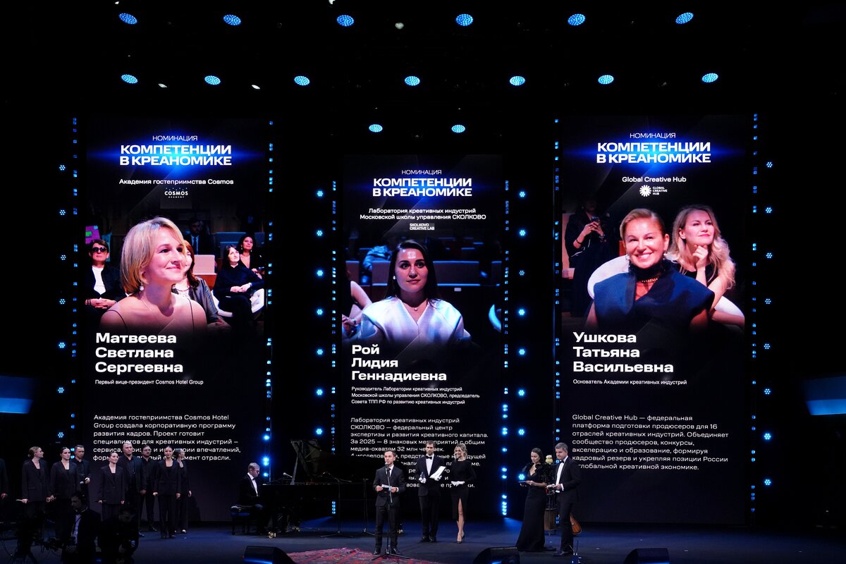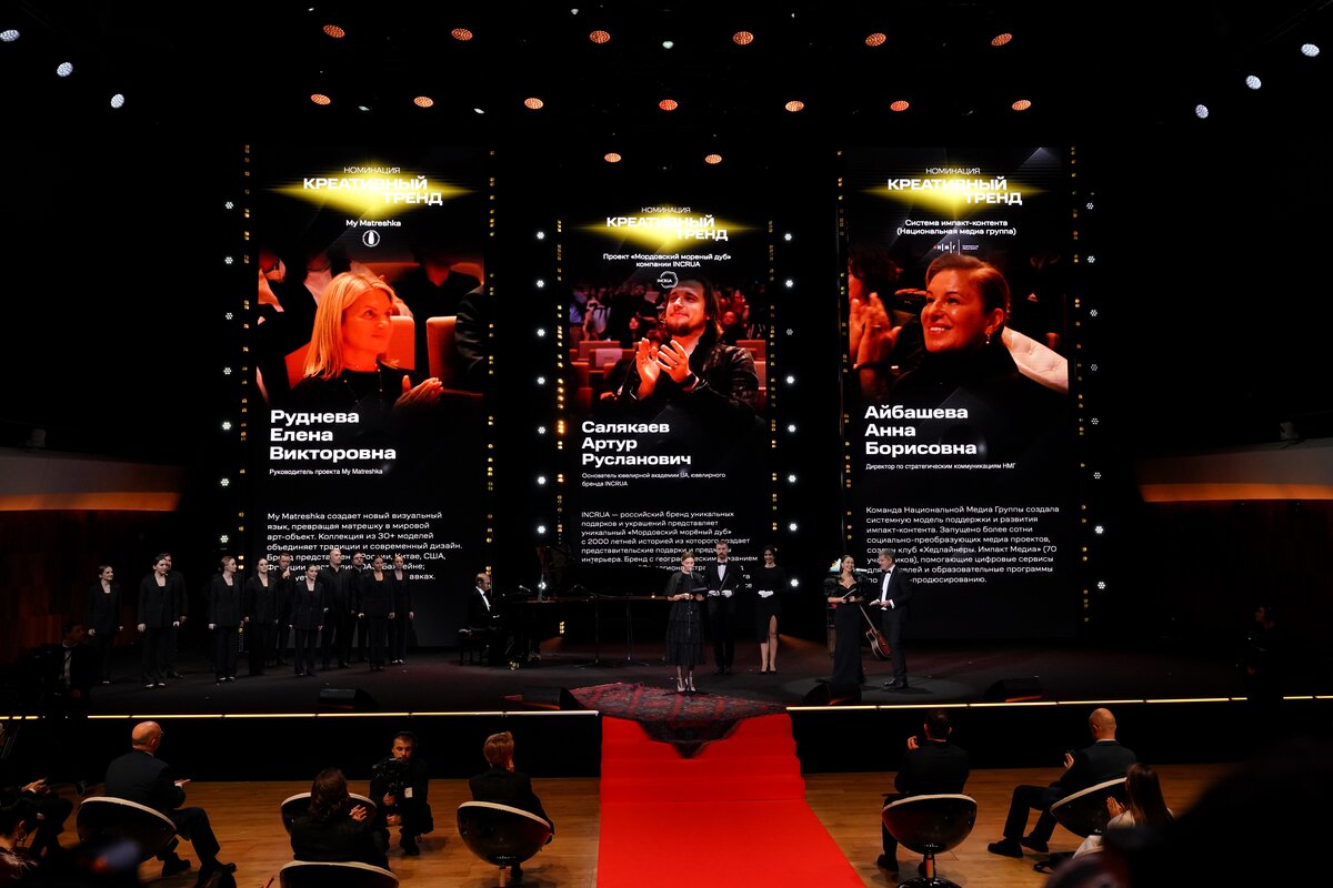 В концертном зале "Зарядье" 1 декабря состоялась церемония награждения V Юбилейной Российской национальной премии в сфере креативных индустрий. Были объявлены 12 победителей из 11 номинаций, отобранных более чем из 1 400 заявок со всей страны.