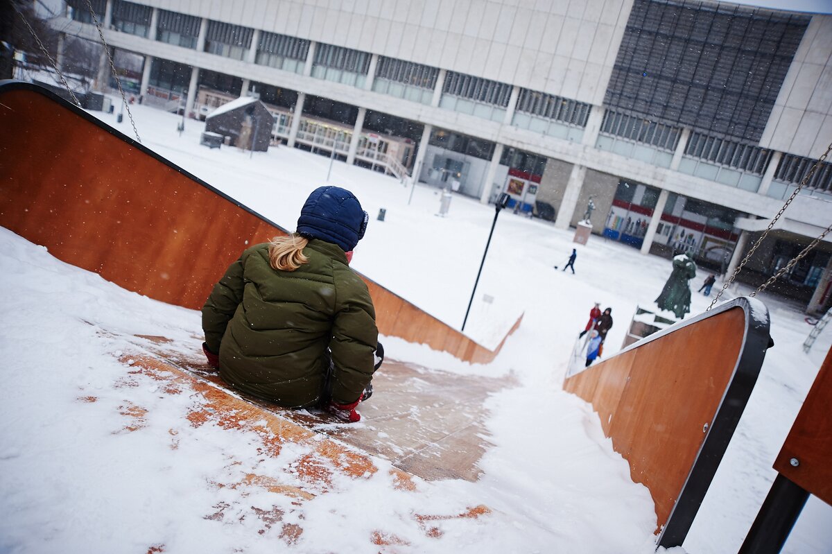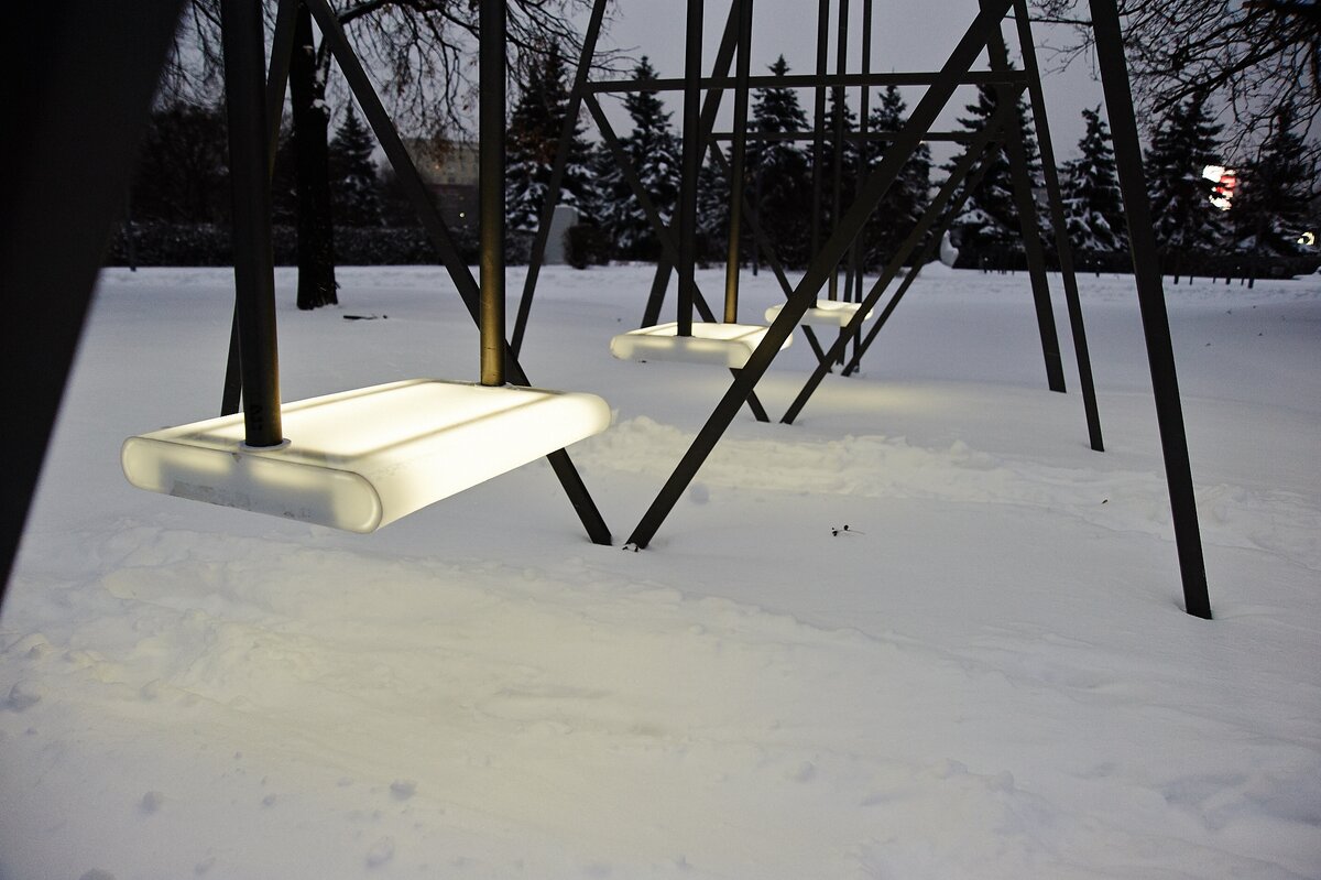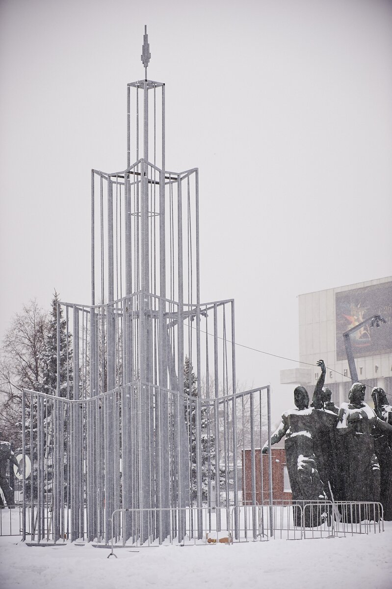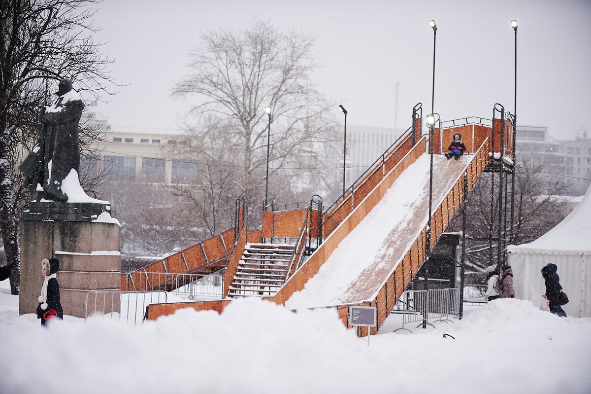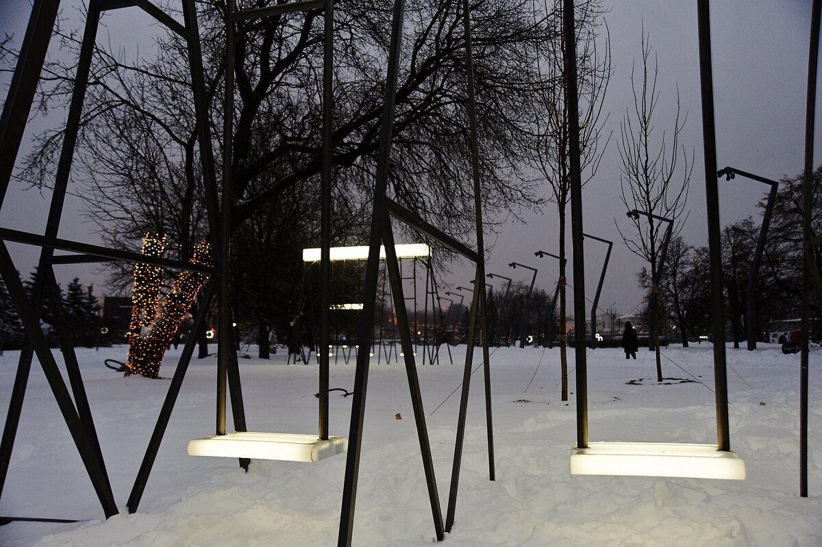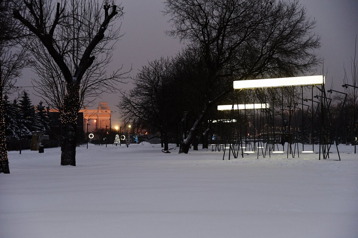 У главного входа парка искусств МУЗЕОН появились елка, которая напоминает одну из московских высоток, а также тюбинговая горка и световые качели. В основу конструкции новогоднего дерева положен лабиринт.