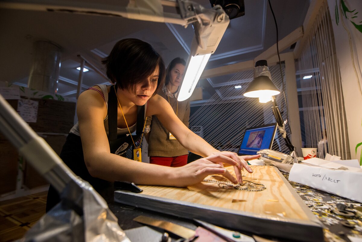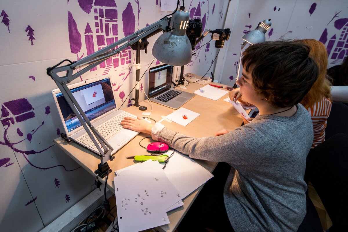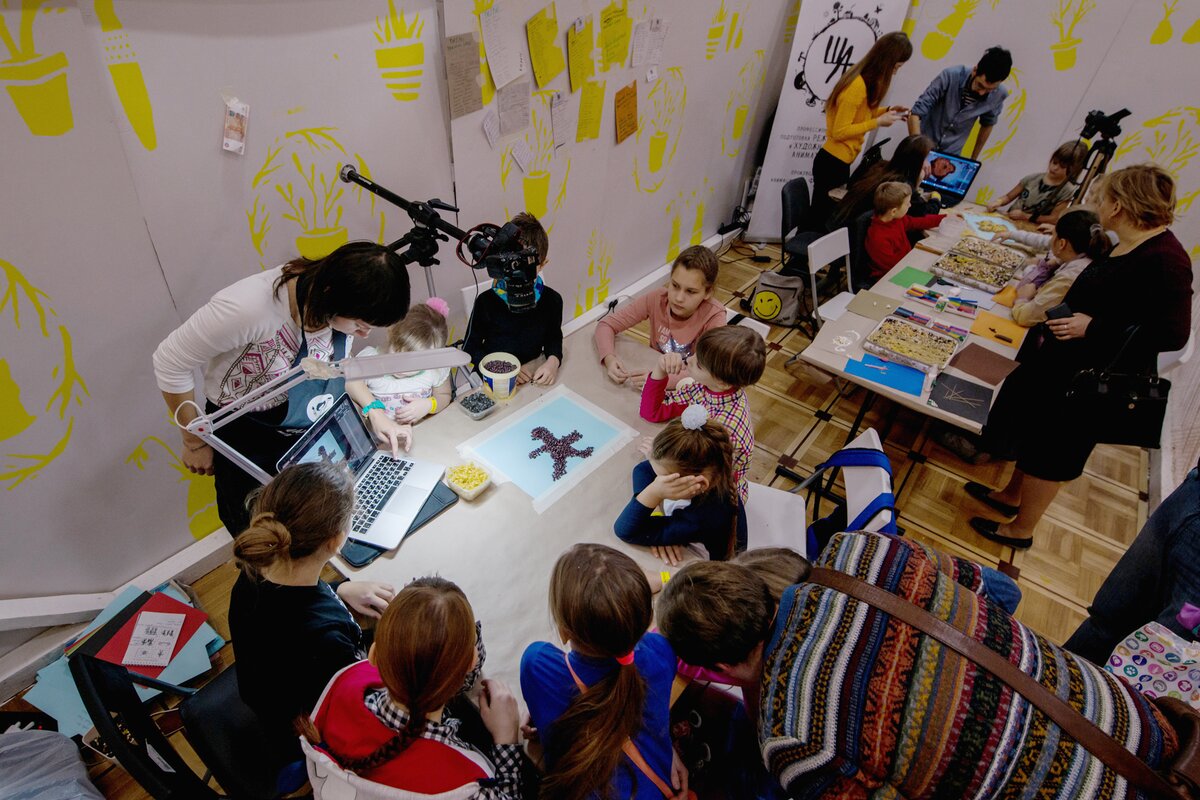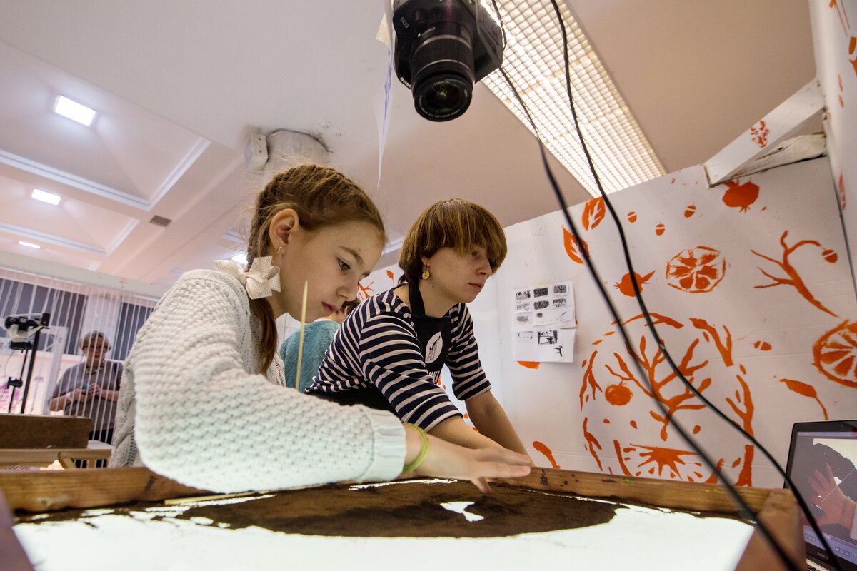 В 24 цехах маленькие и взрослые гости снимали мультфильмы и в традиционных – рисованной, пластилиновой, кукольной, – и в более редких техниках, например, сыпучей анимации или ожившей живописи.