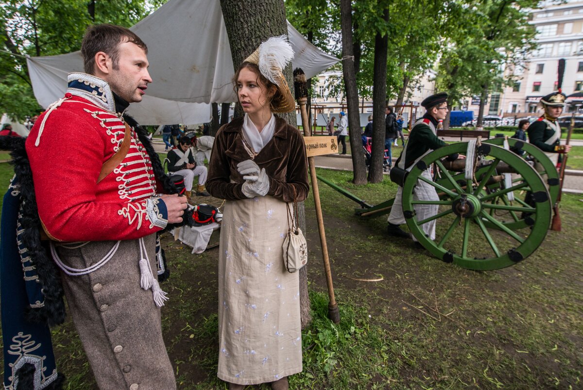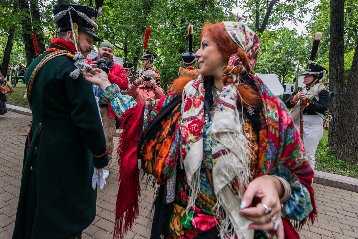 Фестиваль "Времена и Эпохи. Собрание" открылся в Москве. На время мероприятия Страстной бульвар перенесся в эпоху Наполеоновских войн. На площадке под названием "1812 год. Война и мир" встали противоборствующие лагеря русской и французской армий. В фестивали приняли участие реконструкторы из России и Франции.