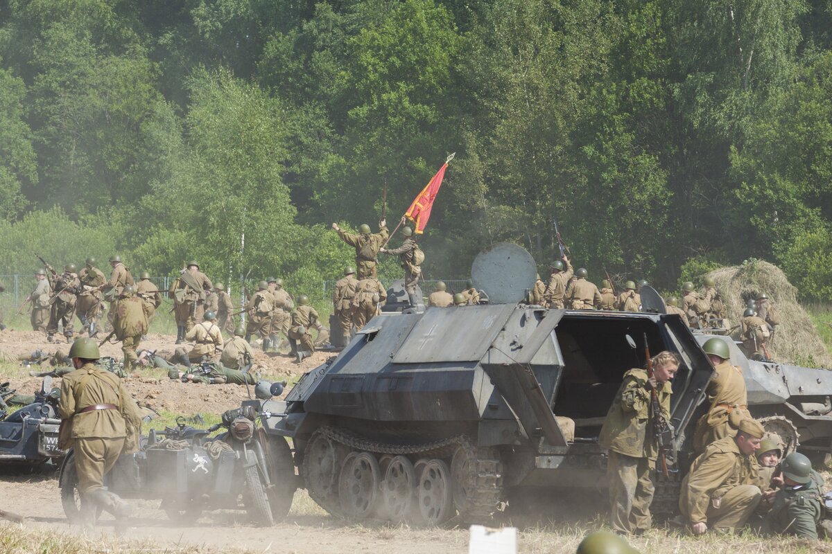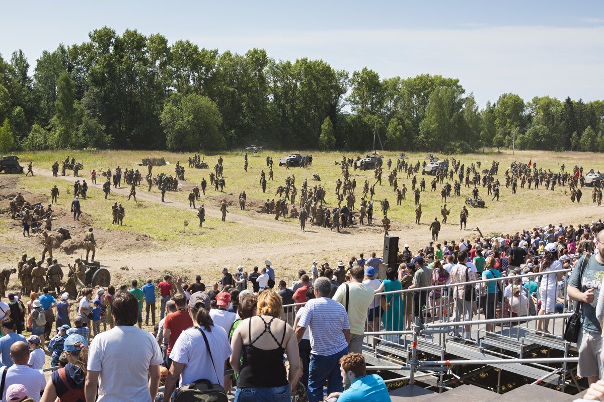 В программу также входили исторические реконструкции, имитации взрывов и стрельбы. На поле можно было увидеть танки, услышать грохот разрывающихся снарядов и рев автомобильных двигателей. На специальных площадках были представлены настоящие экспонаты времен войны. Гости смогли познакомиться с бытом и работой летчиков, танкистов, пехотинцев, врачей и связистов, а также пообщаться с представителями поисковых отрядов и клубов военно-исторической реконструкции. Для детей был организован Курс молодого бойца и курс "Маленькая медсестра".
