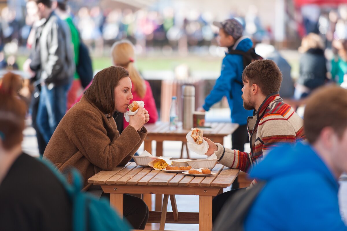 17 апреля на Фонтанной площади в "Сокольниках" прошел фестиваль фудтраков. Меню кафе на колесах включало необычные бургеры, сэндвичи, картофель фри и другой "стрит-фуд". Гости провели выходной в парке, наслаждаясь вкусной едой и хорошей музыкой.