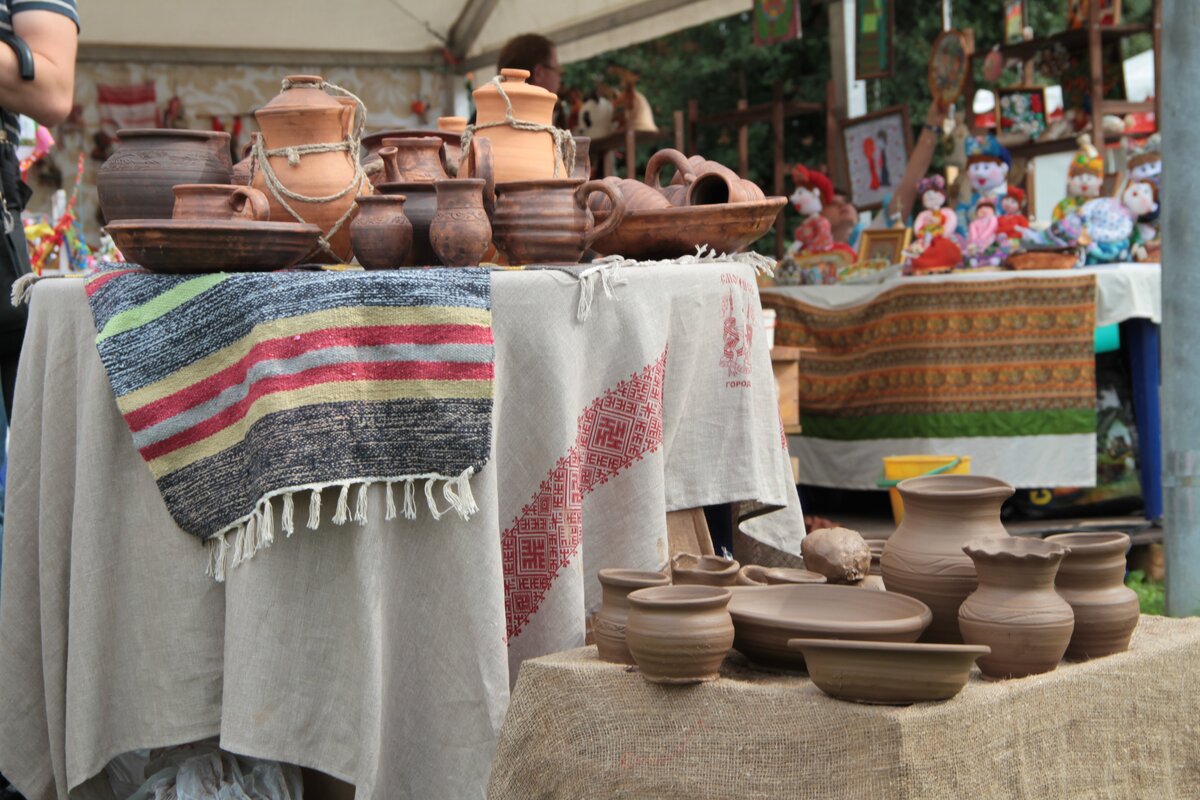 В торговых рядах были представлены сувенирные изделия древних ремесел: изделия из ткани, металла, дерева, кожи и стекла, выполненные по дошедшим до нас старинным технологиям.