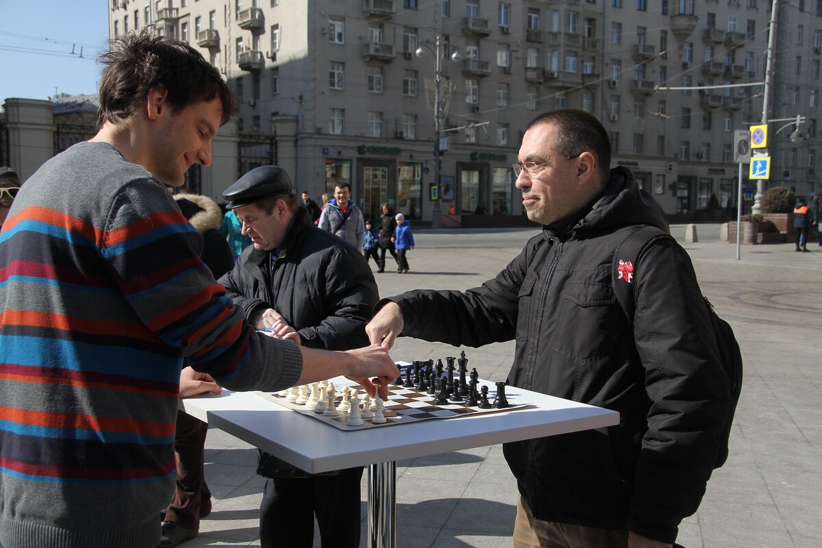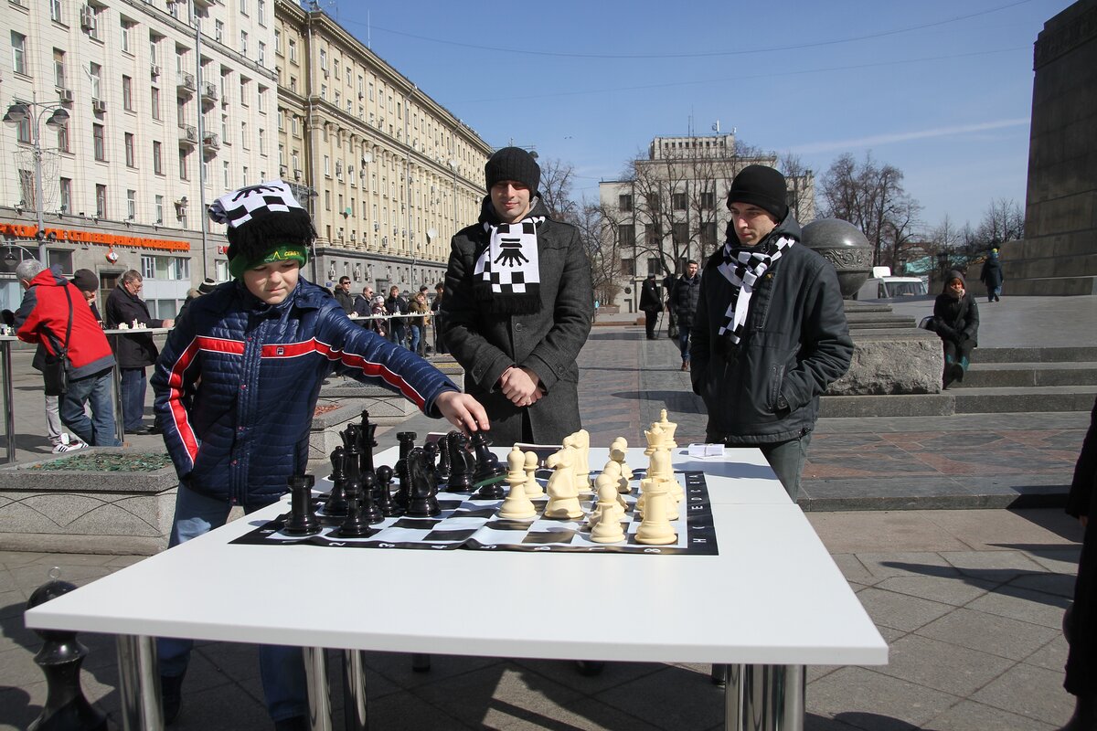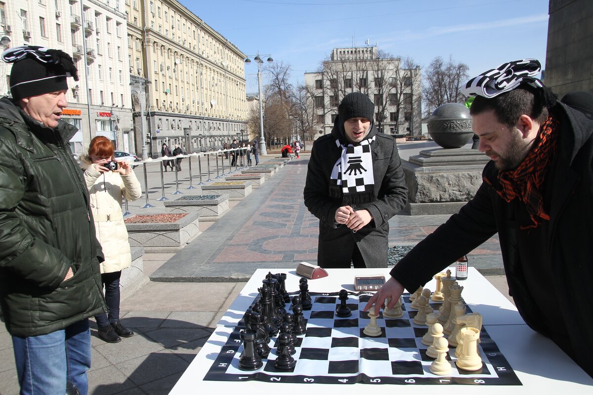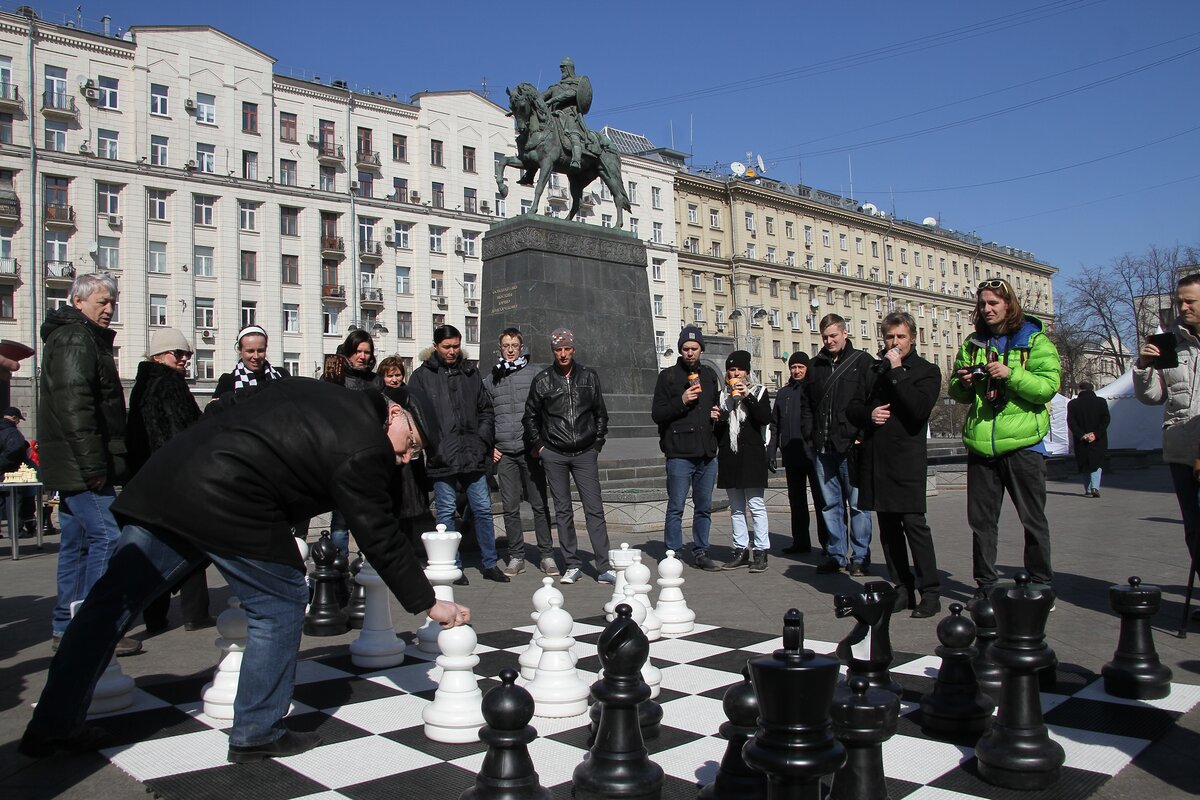 На Тверской площади прошел городской фестиваль шахмат, в рамках которого состоялись сеансы одновременной игры с гроссмейстером и конкурсно-игровая программа на тему шахмат. Она включала в себя, например, шахматный "морской бой".