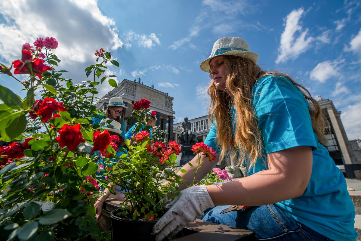 Цветник появился на ступенях Российской государственной библиотеки в рамках фестиваля "Московское лето. Цветочный джем". По словам авторов, ландшафтная композиция из десятков белых, розовых и красных роза символизирует расцветающие идеи. Место для природы, уверены организаторы фестиваля, найдется даже в мегаполисе.