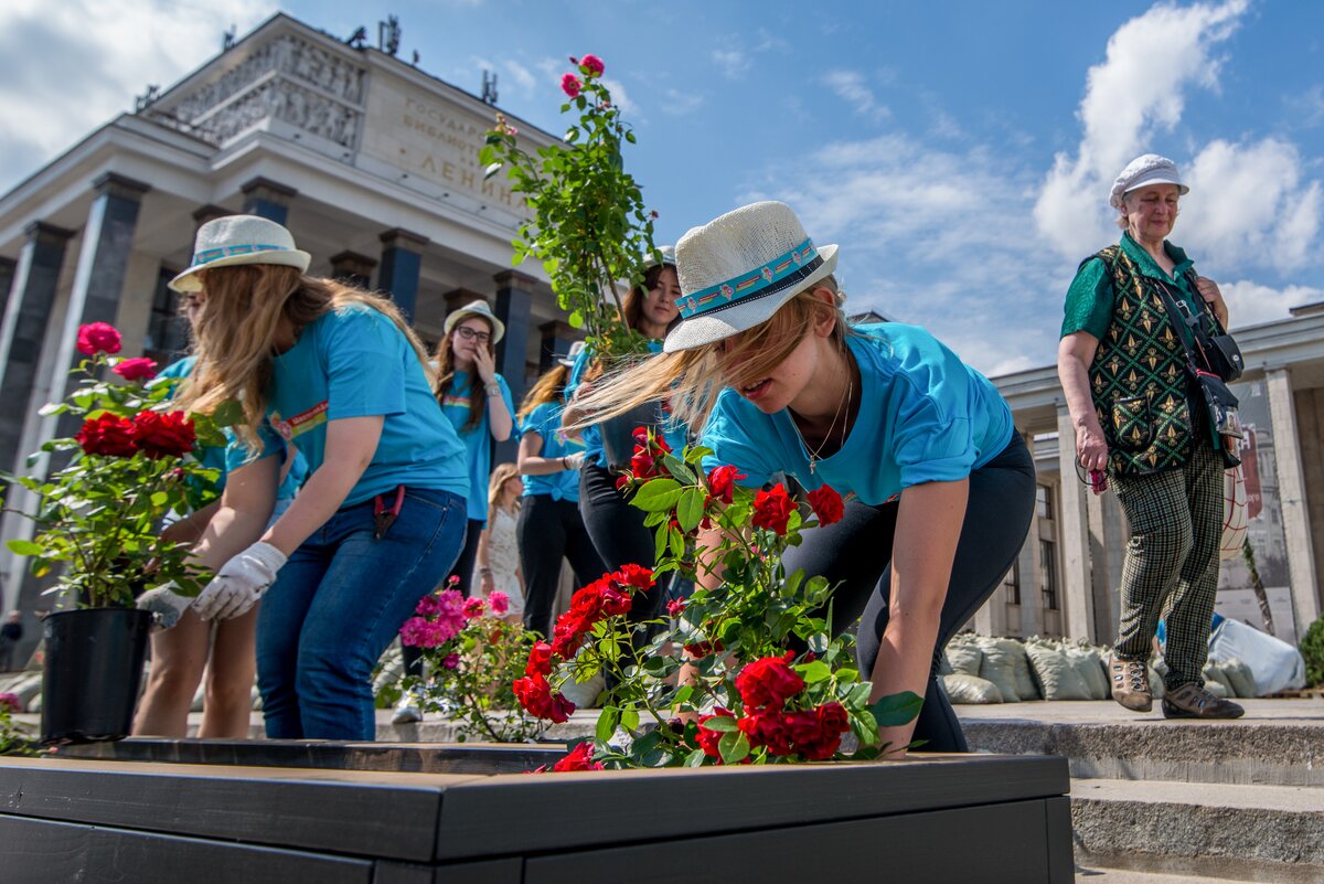 КультураРозы расцвели на ступенях Российской государственной библиотеки