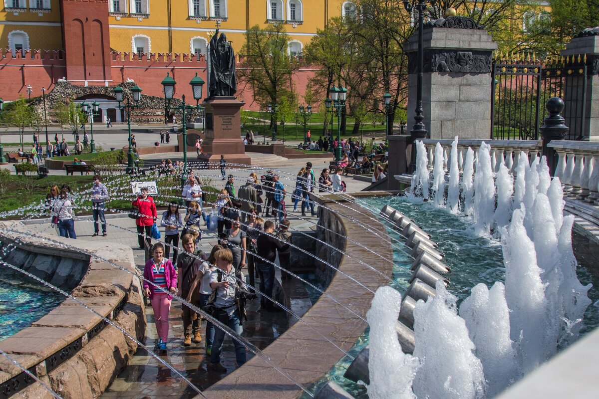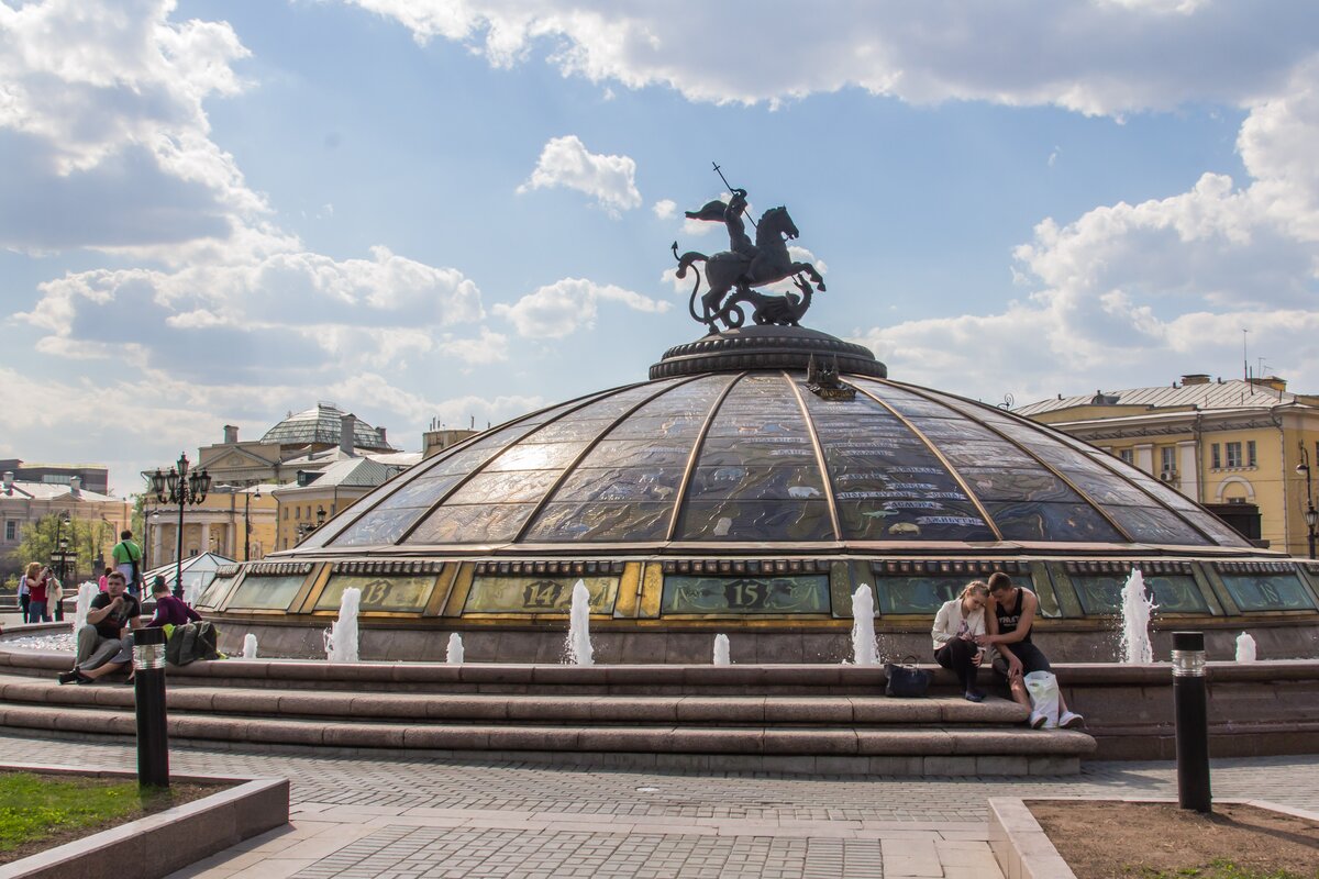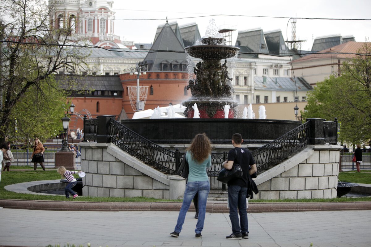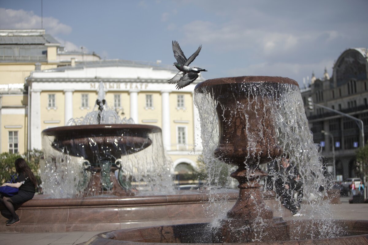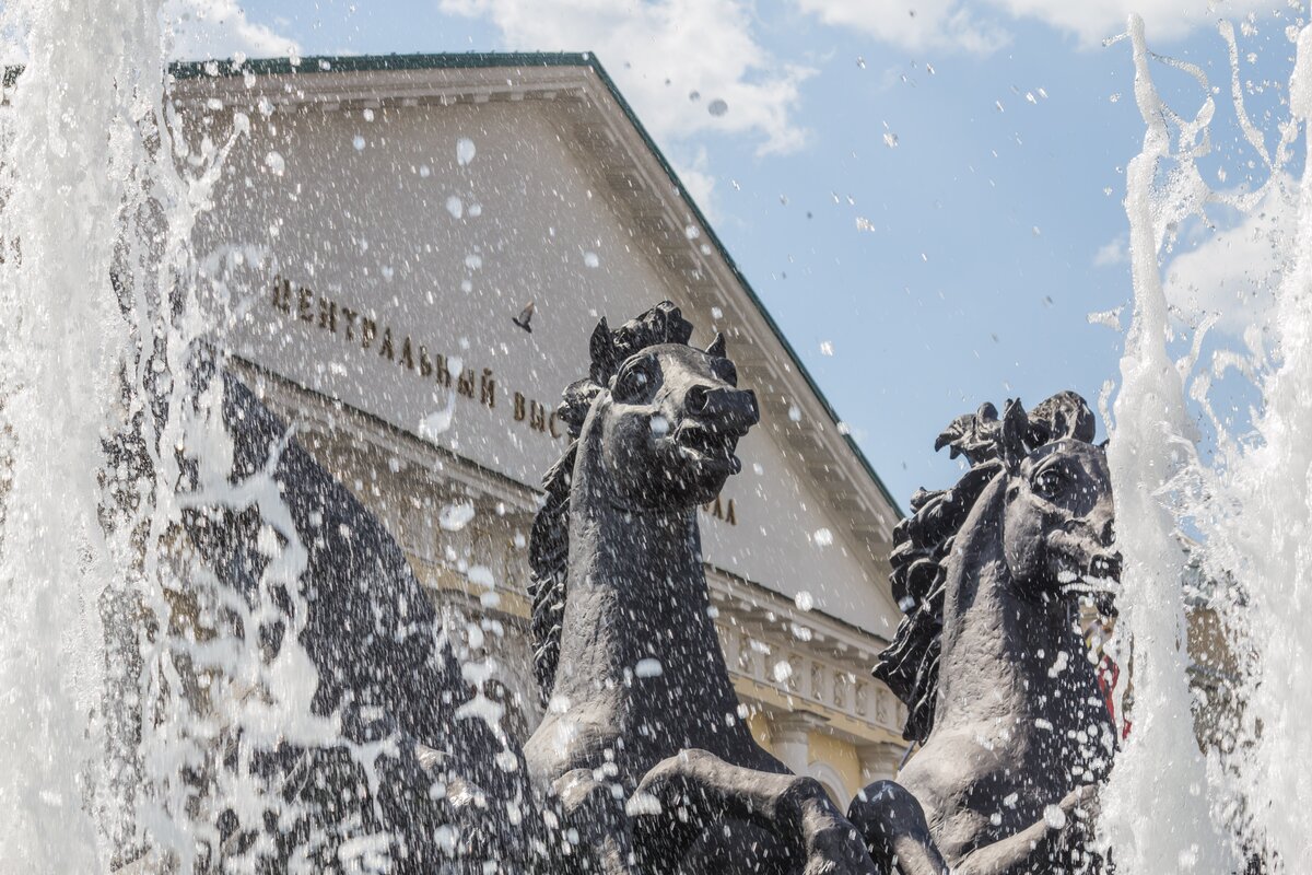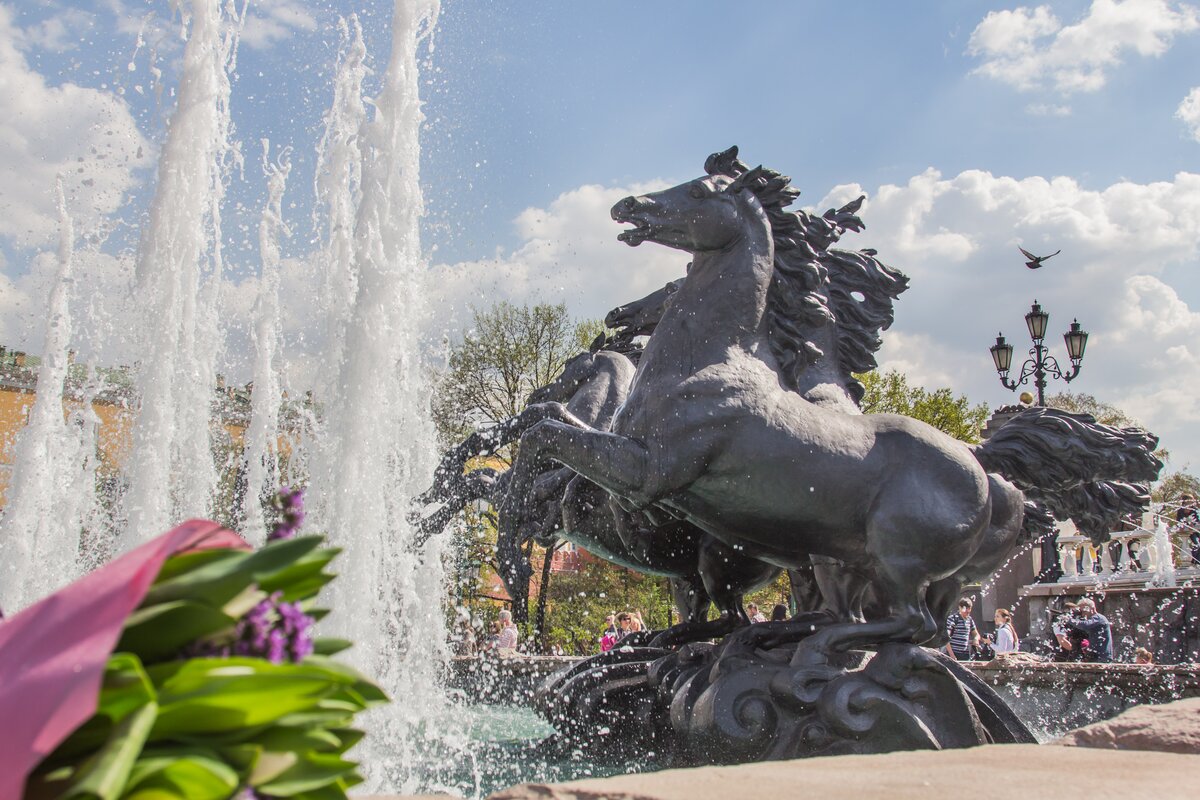 В Москве 30 апреля открылся сезон фонтанов. В городе начали работу более 500 водных сооружений, которые будут ежедневно радовать москвичей и гостей столицы с 8.00 до 23.00. Первым был запущен фонтан "Гейзер" на Манежной площади, в чаше которого находится скульптура "Времена года", изображающая четырех коней.
