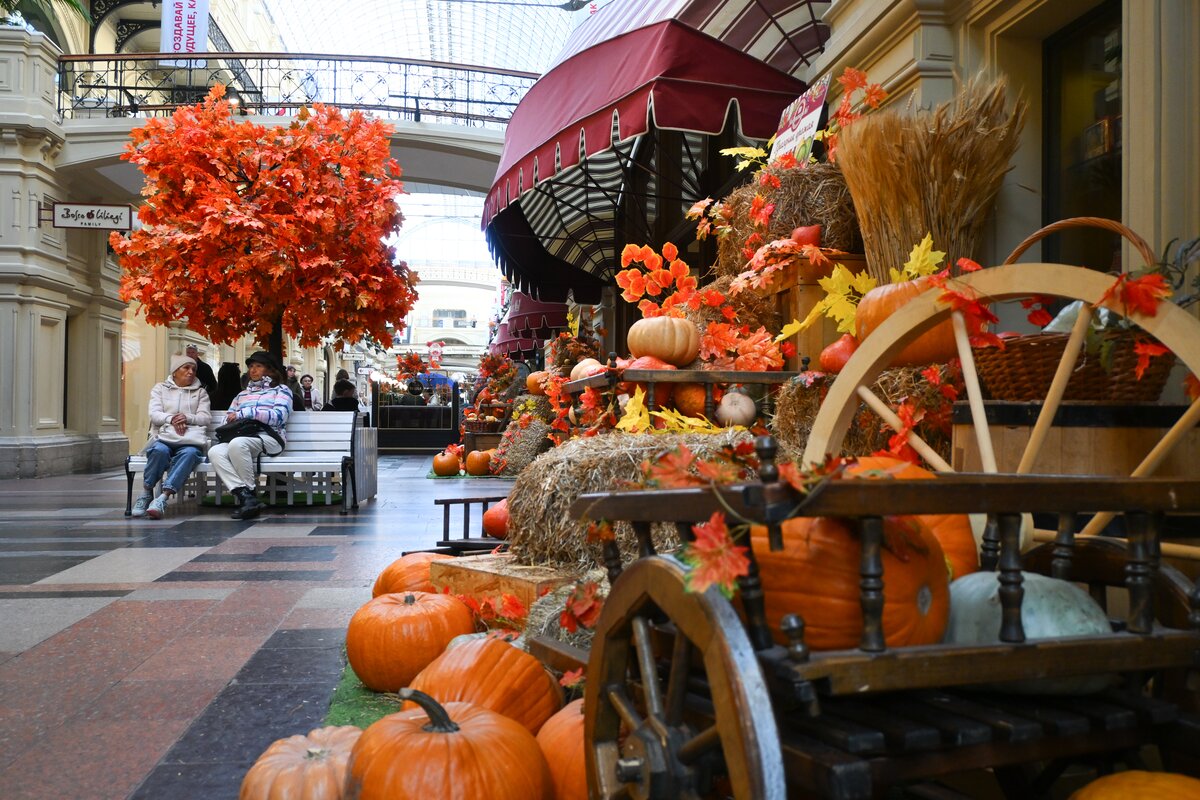 Яркие осенние фотозоны появились в ГУМе. Жителей и гостей Москвы приглашают на "Праздник урожая".