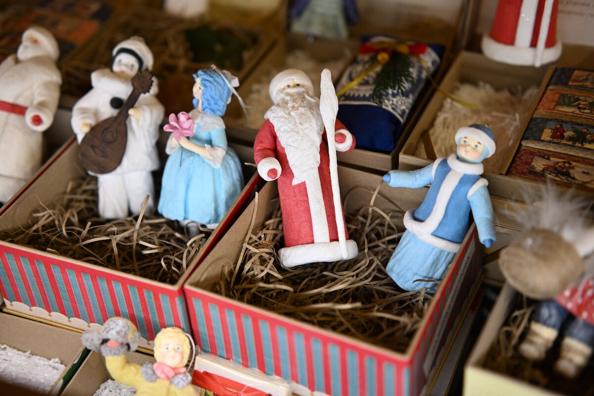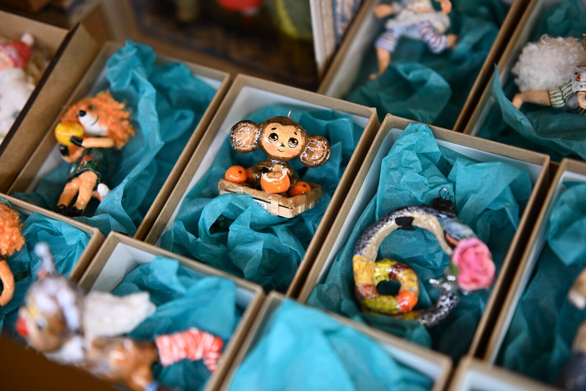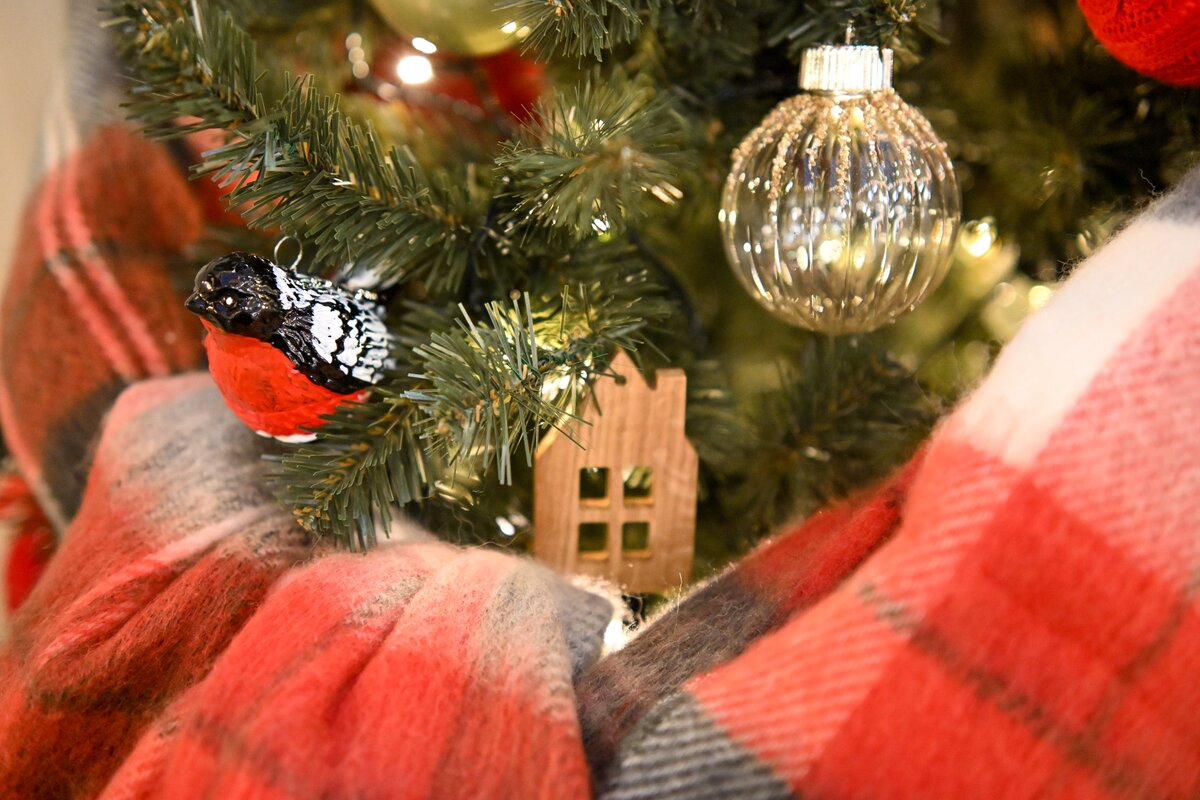 Например, на выставке можно увидеть елку телеканала "Москва Доверие", которая накинула на себя теплый и уютный плед и приготовилась встречать новогодние праздники.