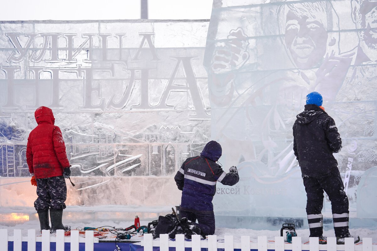 В этом году тема фестиваля – "Инженеры России". Изо льда создали скульптуры самых востребованных инженерных и рабочих профессий, от которых во многом зависит технологический прогресс.