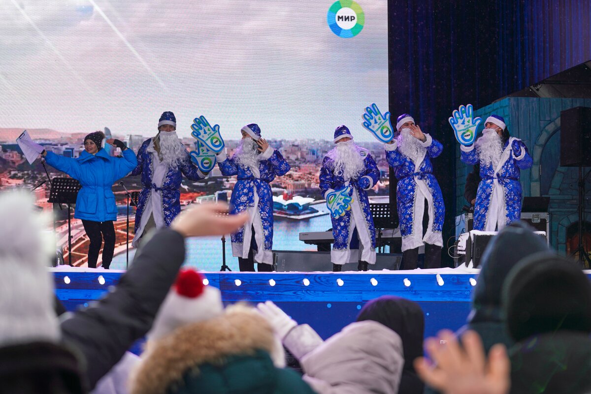 На сцене три раза в день зрители могут посмотреть новогоднее танцевальное шоу – в 15:00, 17:00 и 19:00. Там показывают новые технологии, цирковые трюки, выступления воздушных гимнастов, танцы, интересную анимацию на большом экране.