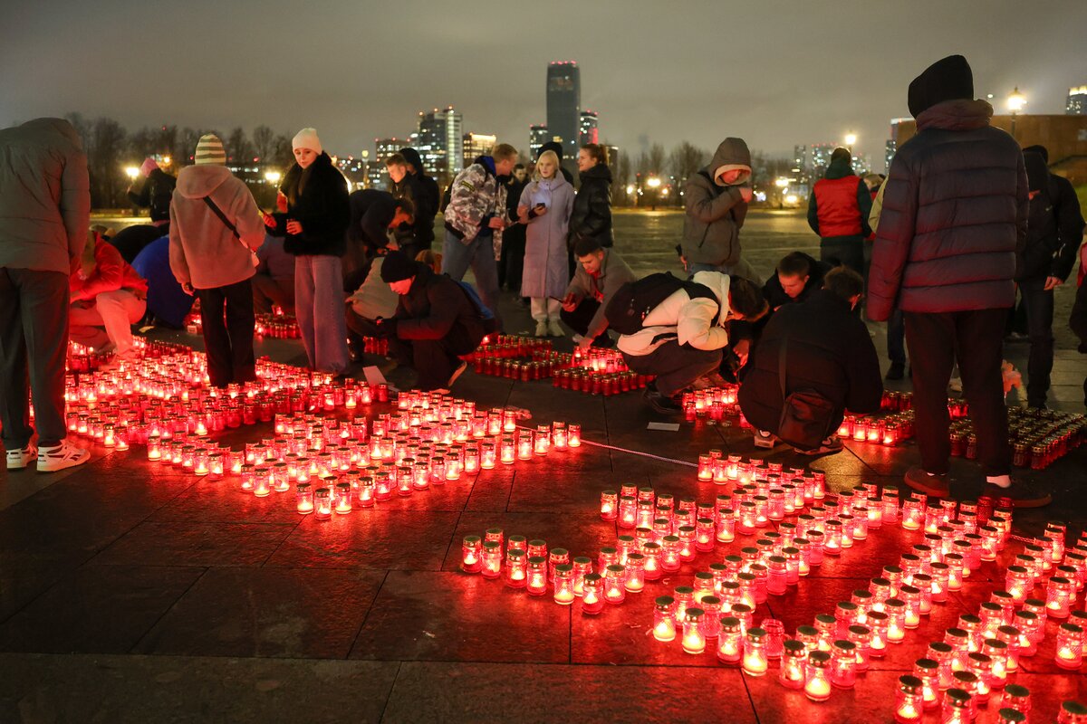 Участники акции выложили фразу: "Имя твое неизвестно, подвиг твой бессмертен". Завершился день торжественной минутой молчания и возложением цветов к мемориалу "Вечный огонь".
