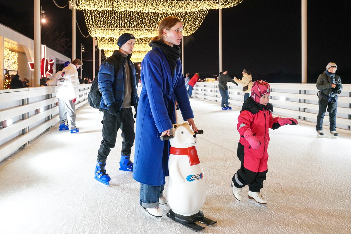 Площадку готовили к открытию почти три месяца. Она будет работать каждый день с 10:30 до 22:00. Протяженность катка составляет 1,7 километра. Это позволит находиться на льду до 2,5 тысячи гостей единовременно.