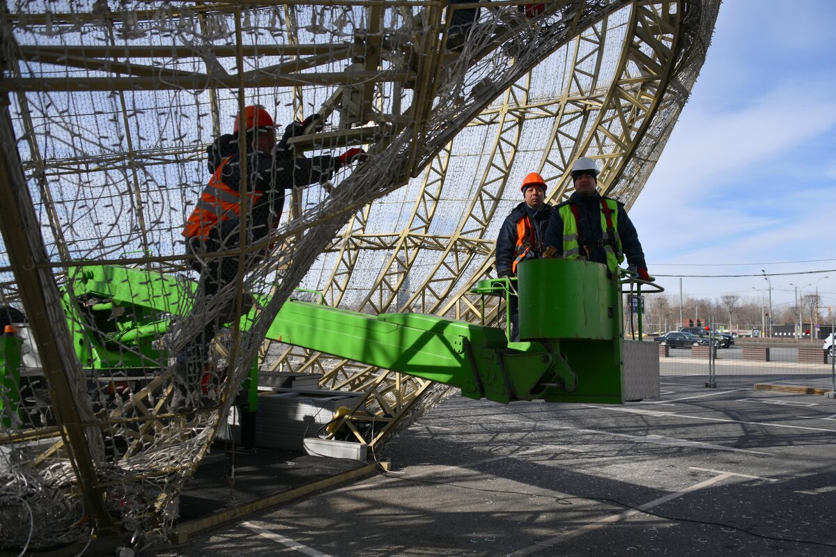 Оставшиеся до весны украшения также могли служить и как дополнительное освещение. Теперь же, после демонтажа, конструкции доставят на склады, где их будут хранить до следующих праздников.