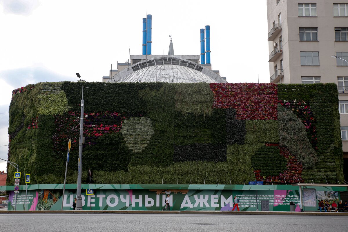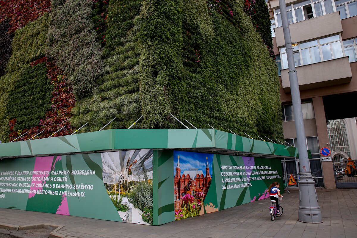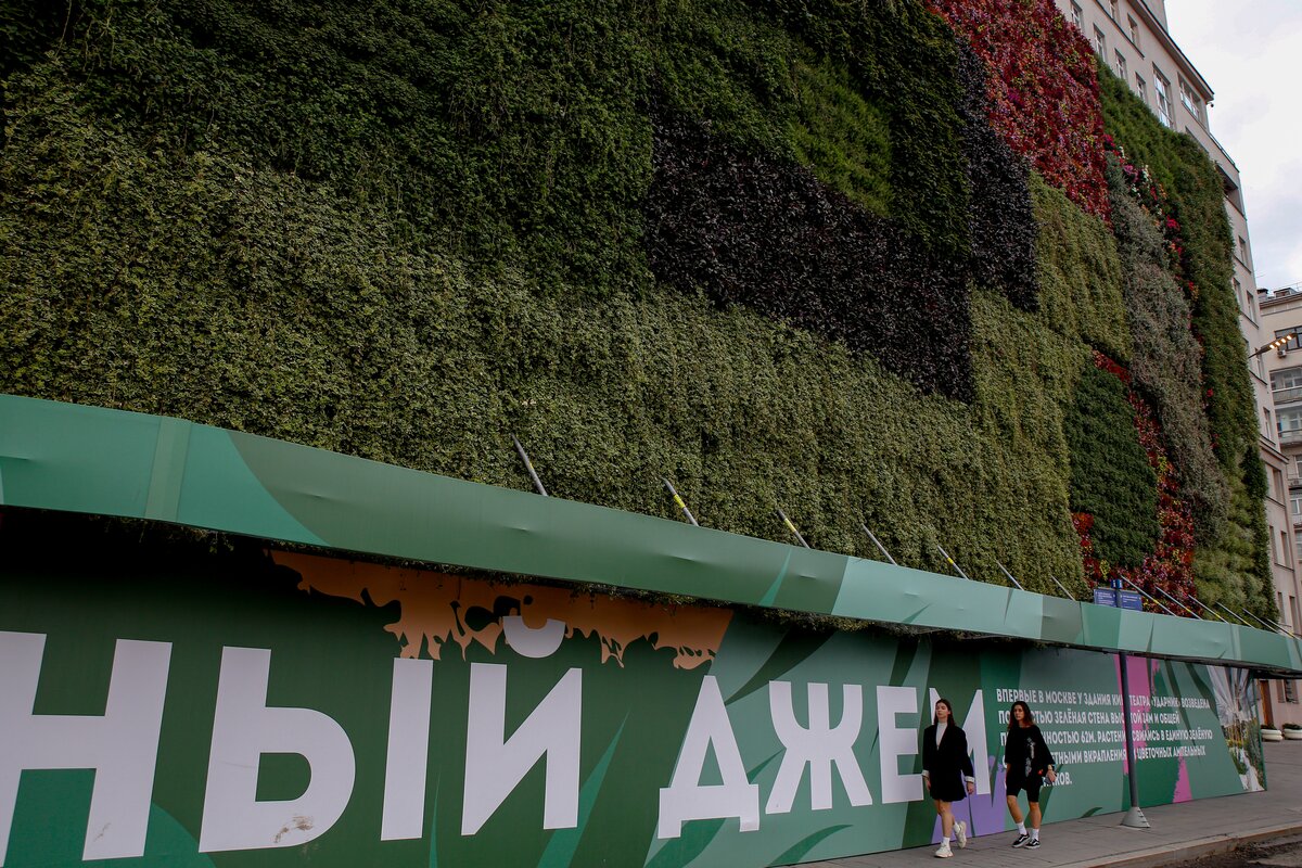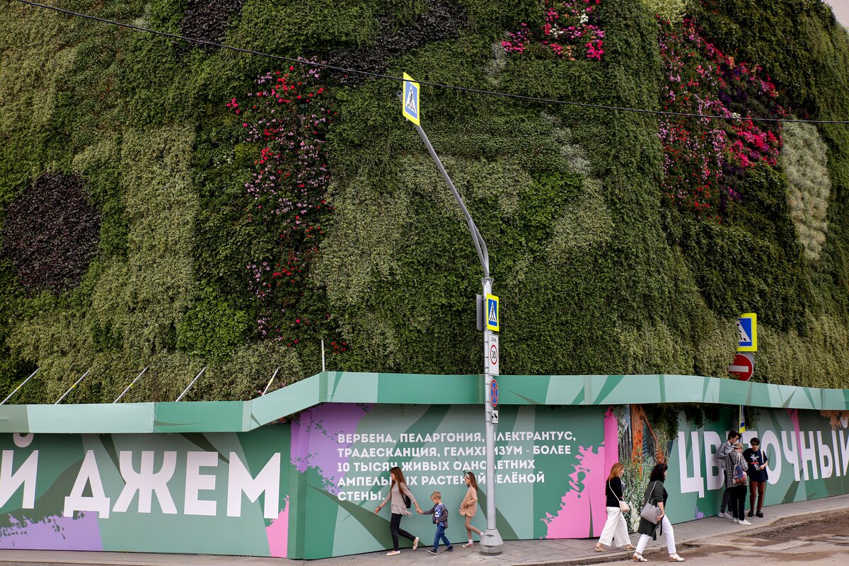 Первую в России стену из растений на свежем воздухе установили рядом с кинотеатром "Ударник" и Домом на набережной в Москве. Инсталляция стала частью фестиваля "Цветочный джем". Высота конструкции составляет 14 метров, протяженность – 62 метра.