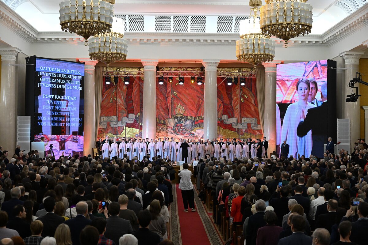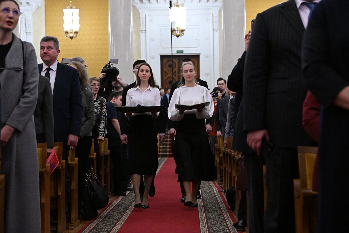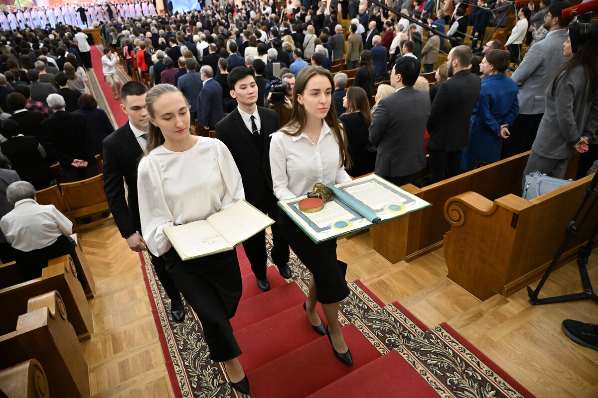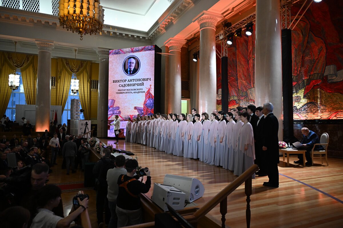 Места в актовом зале МГУ также заняли заслуженные профессора, преподаватели, научные сотрудники и работники, а также 270 стипендиатов – молодых научных сотрудников, аспирантов и студентов.