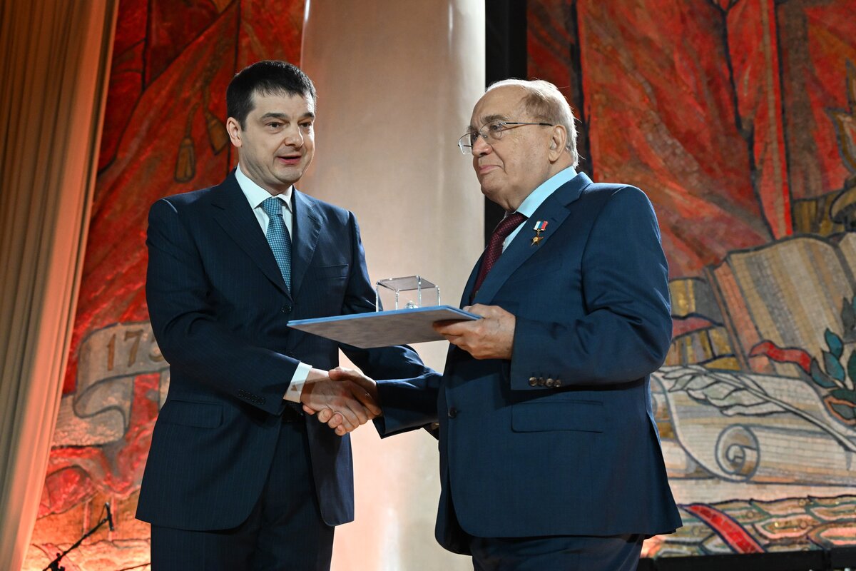 Садовничий и президент РАН Геннадий Красников обменялись памятными подарками. Ректор получил двухтомник, посвященный истории Российской академии наук. Академик, в свою очередь, получил памятный юбилейный знак "270 лет МГУ".