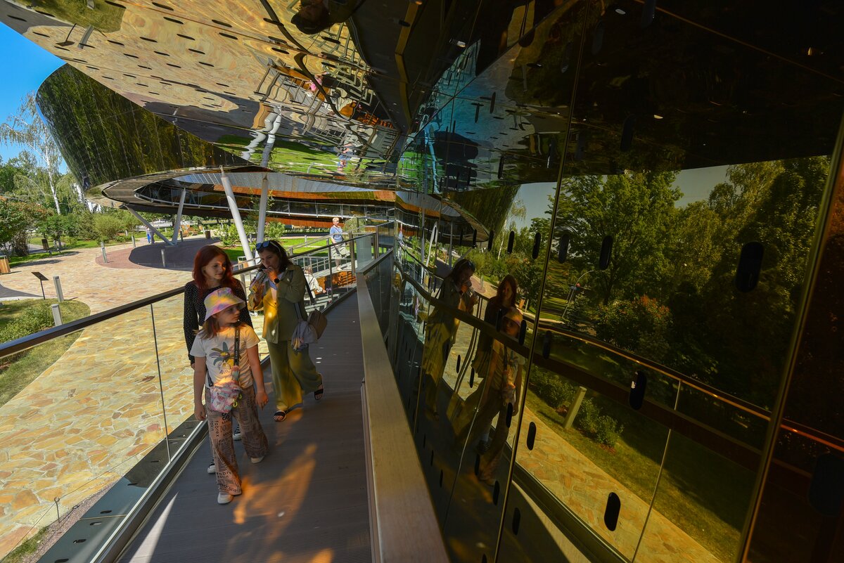Архитекторы отметили, если смотреть на "Ленту" снаружи и изнутри, то будет казаться, что дорога перекручивается. Известно, что у этого объекта на ВДНХ не существует аналогов как в стране, так и в мире.
