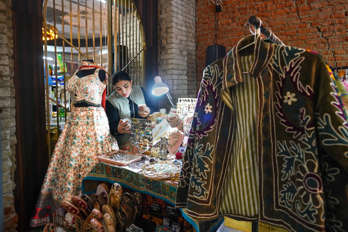 Гости могли познакомиться с национальными товарами, яркими тканями, специями и эко-продуктами. Торговцы представили не только популярные бренды, но и редкие вещицы. На фудкорте работали сразу два индийских ресторана с национальными блюдами и сладостями.