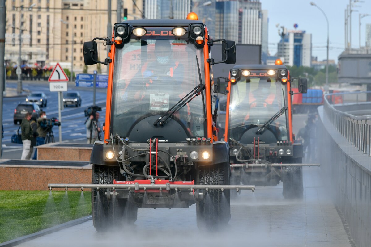 В Москве состоялась восьмая масштабная дезинфекция городских пространств. Специальными растворами обработали более 300 миллионов квадратных метров улиц, площадей и дворов.