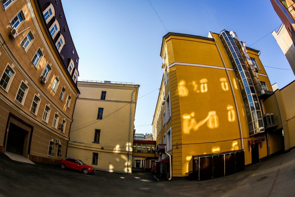 Сонные солнечные зайцы лениво бродят по стенам домов, создавая диковинные узоры, словно кто-то раскрутил огромный калейдоскоп с желто-оранжевыми стеклышками. А ты переходишь из арки в арку, из двора в двор, как будто перемещаешься между разными городами. Вот только что с фасада была вполне себе настоящая Москва, а во дворе уже всамделишный Питер.