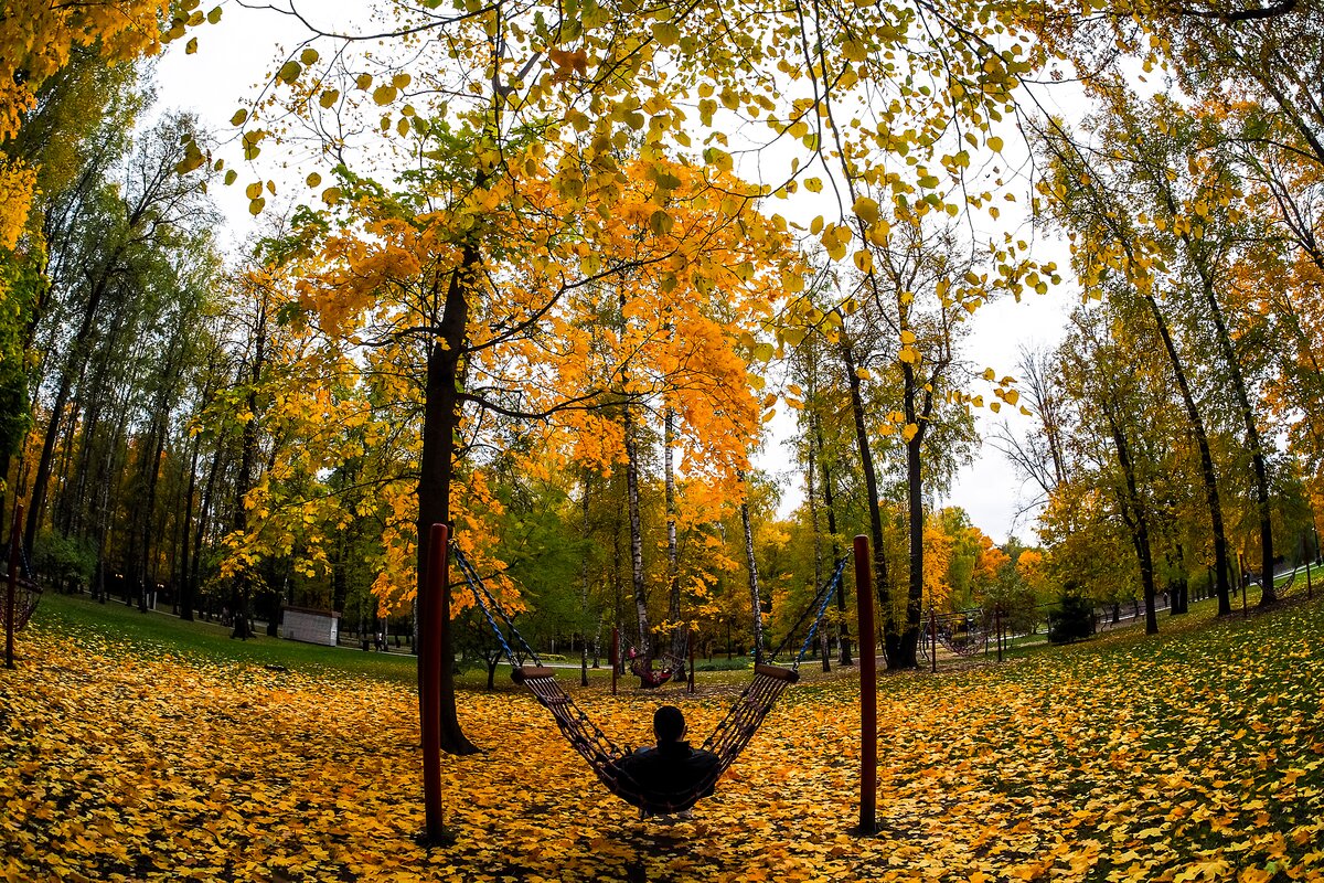 В солнечную осеннюю погоду особенно приятно погулять в столичных парках. Кроны деревьев приобрели красочный вид, а опавшие листья золотым покрывалом лежат на земле.