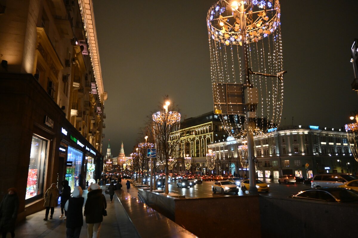 Так, на Тверской, Пушкинской площадях и площади Революции, в Камергерском и Газетном переулках, а также в Новопушкинском сквере засверкали ажурные световые арки из развешанных нитей светящихся гирлянд. На Манежной площади появились яркие конструкции и елка высотой около 12 метров. "Звездное небо" можно наблюдать у себя над головой на улицах Мясницкая и Ильинке. А над Большой Дмитровкой можно увидеть инсталляции, напоминающие светящихся медуз.