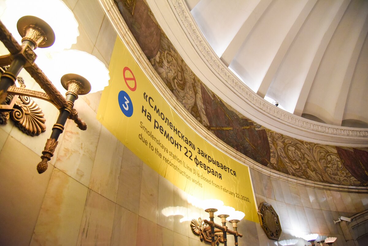 Станция "Смоленская" Арбатско-Покровской линии Московского метрополитена будет закрыта для пассажиров с 22 февраля 2020 года до июня 2021 года. Поезда будут проезжать ее без остановки.