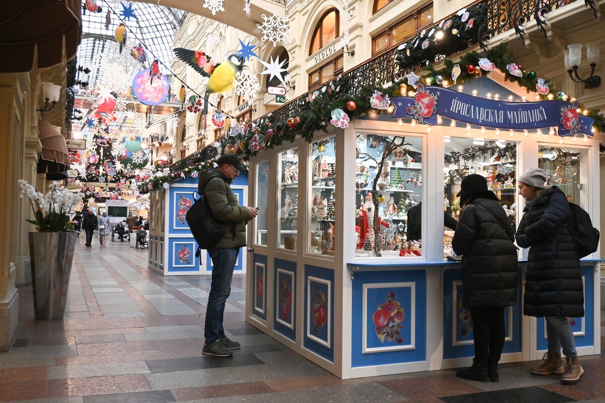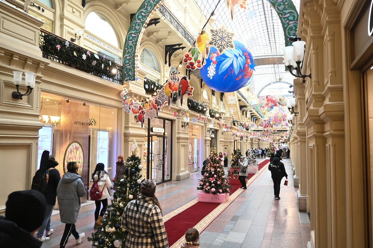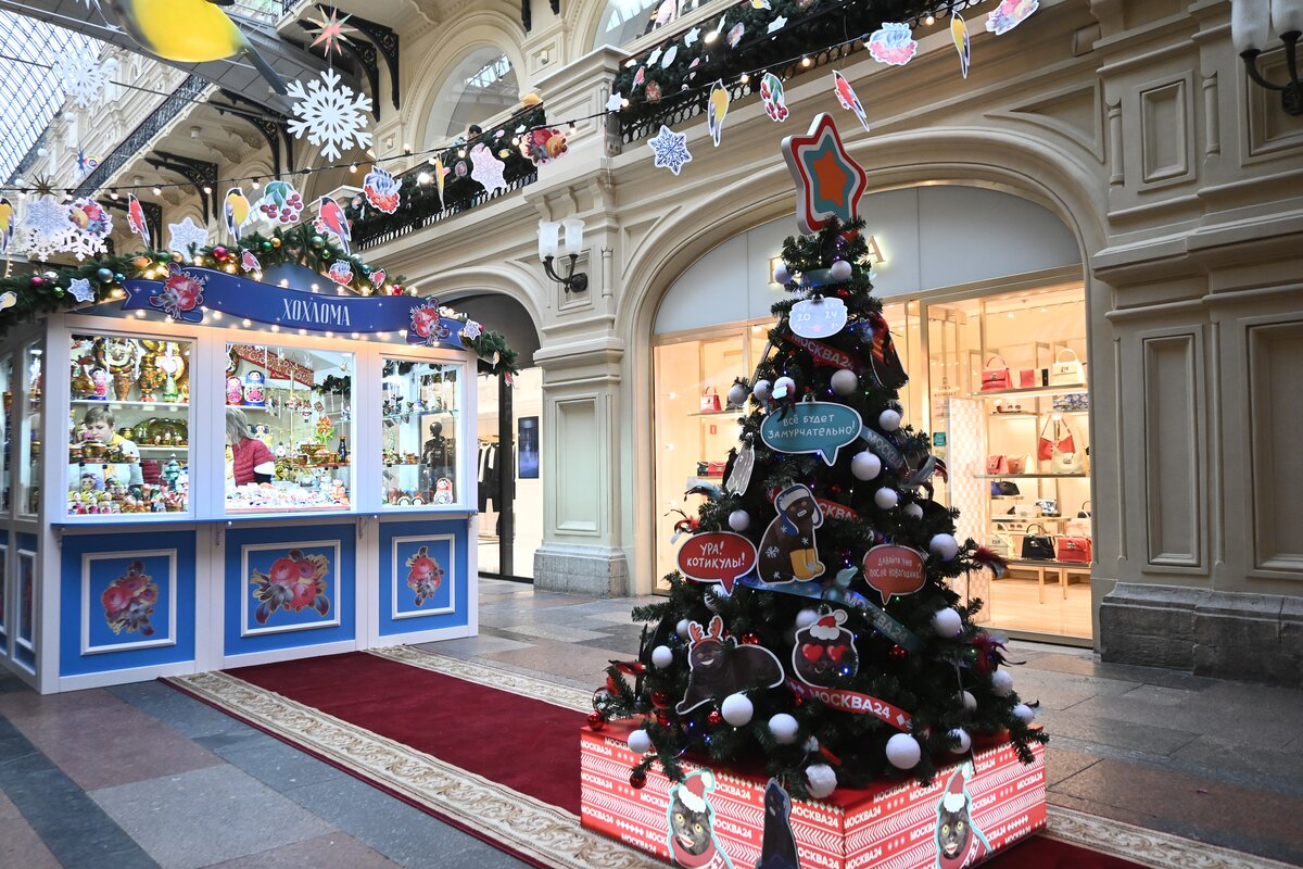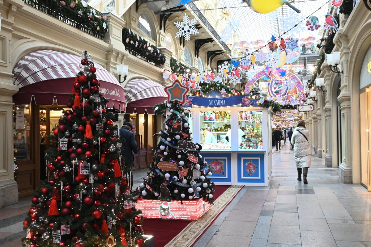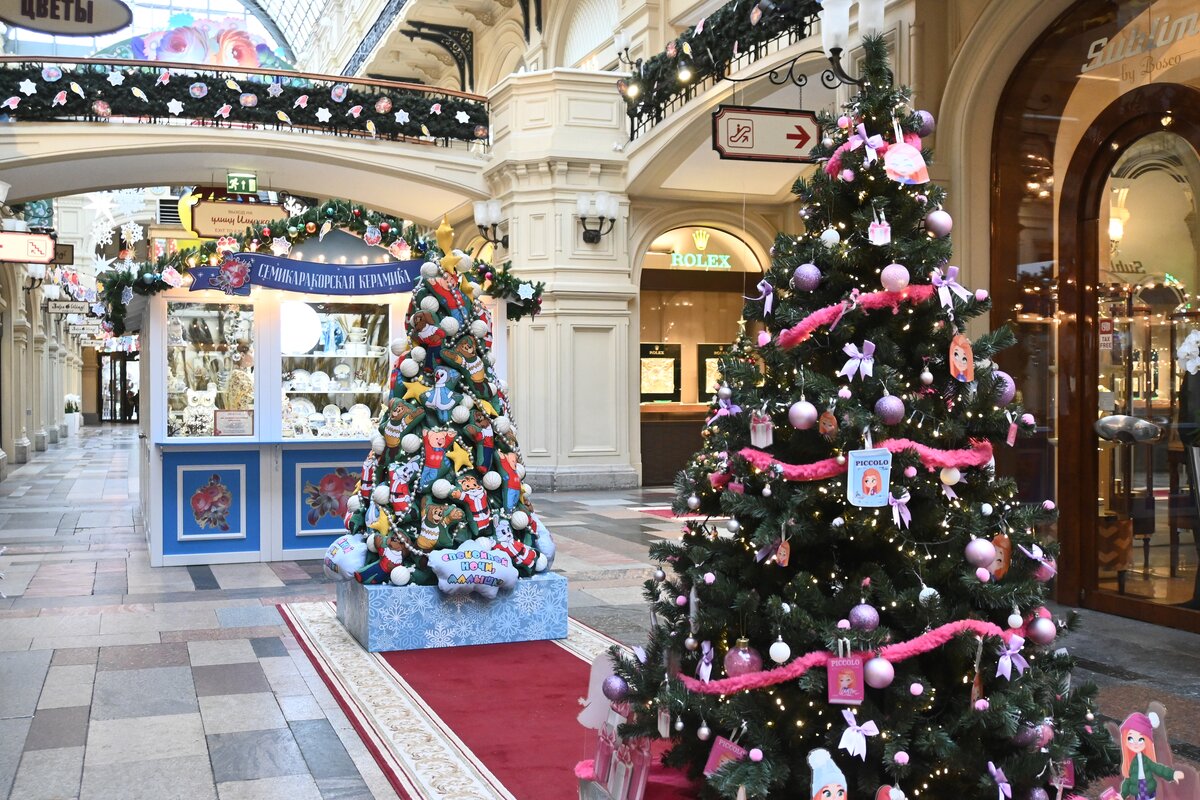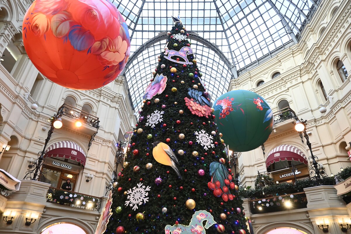 ГородВ Москве открылась ежегодная выставка "Новогодние елки в ГУМе на Красной площади"