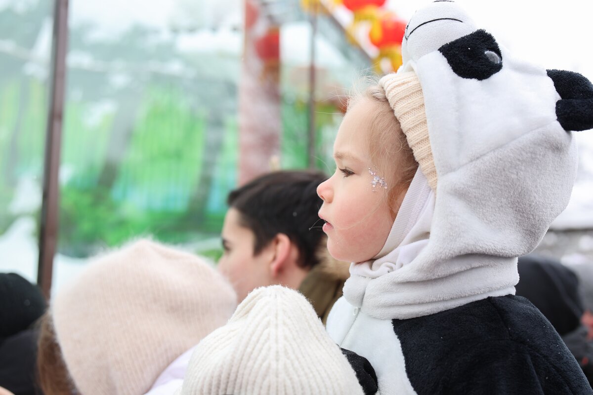 На главном входе зоопарка гостей встречали диджей и аниматоры в костюмах панды. Для посетителей устраивали красочное шоу, где участниками были символ года Огненная Лошадь и китайский дракон, а также барабанщики.
