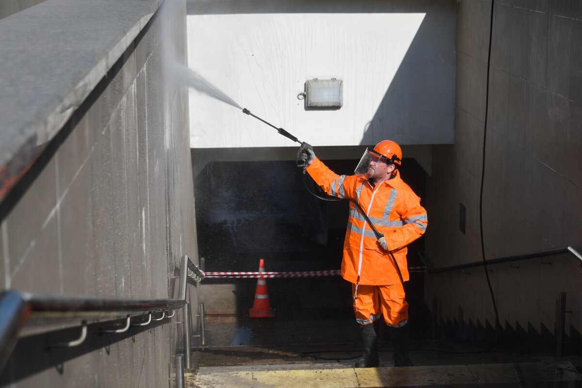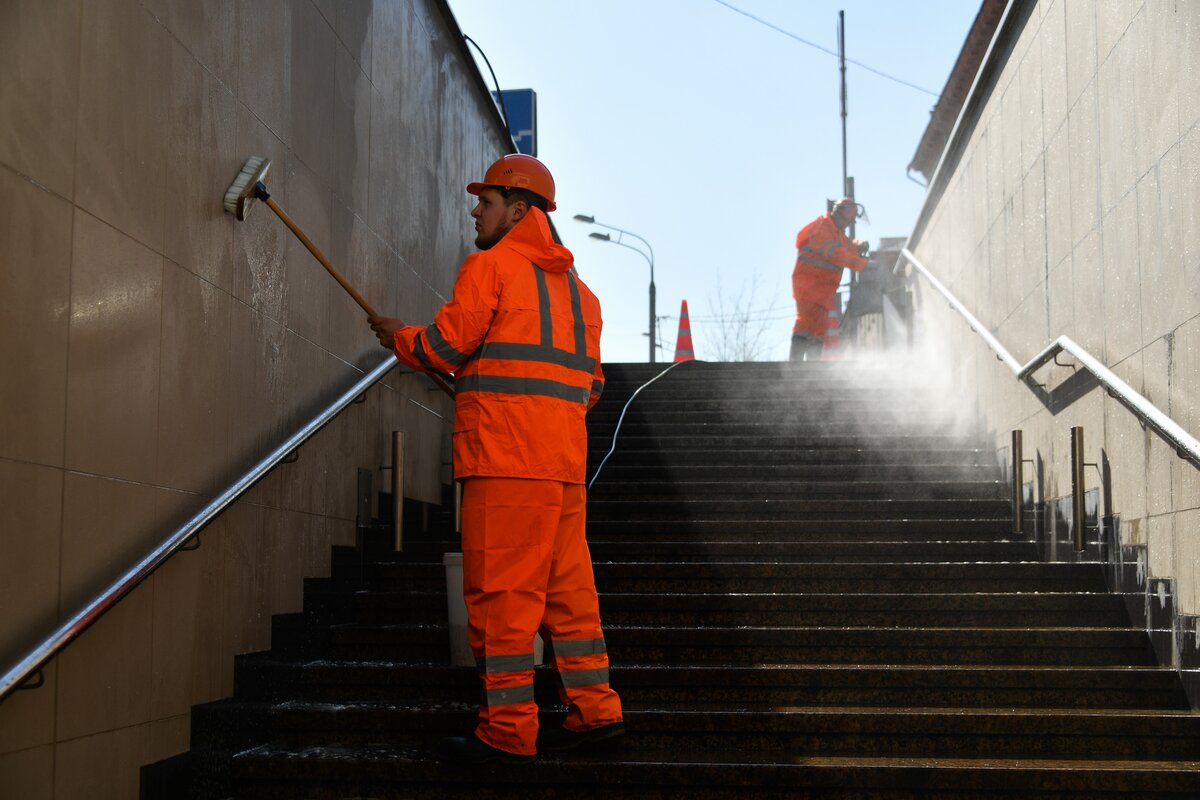Подземные пешеходные переходы очистят вручную от грязи и пыли, промоют с помощью аппаратов высокого давления и щеток стены, а также гранитные парапеты и лестничные сходы. Помоют и вытрут металлические поручни, проведут покраску и ремонт отдельных элементов сооружений.