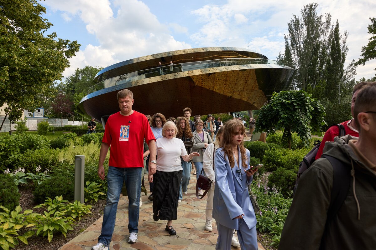 По ходу маршрута представители СМИ посетили восемь самых зеленых точек народной выставки, в том числе экотропу, Мичуринский сад и Зеленый лабиринт. Отдельное место в экскурсии заняла прогулка по Ландшафтному парку и пешеходному аттракциону "Лента Мебиуса".