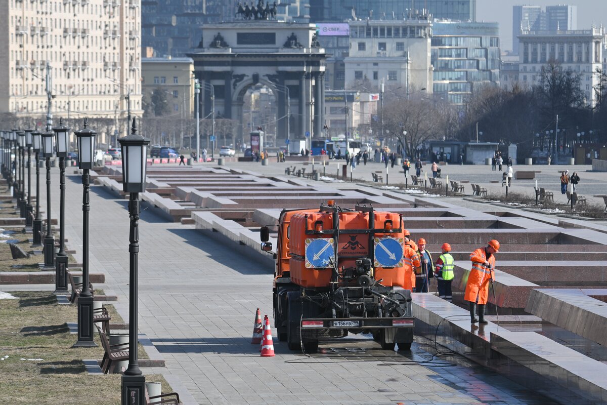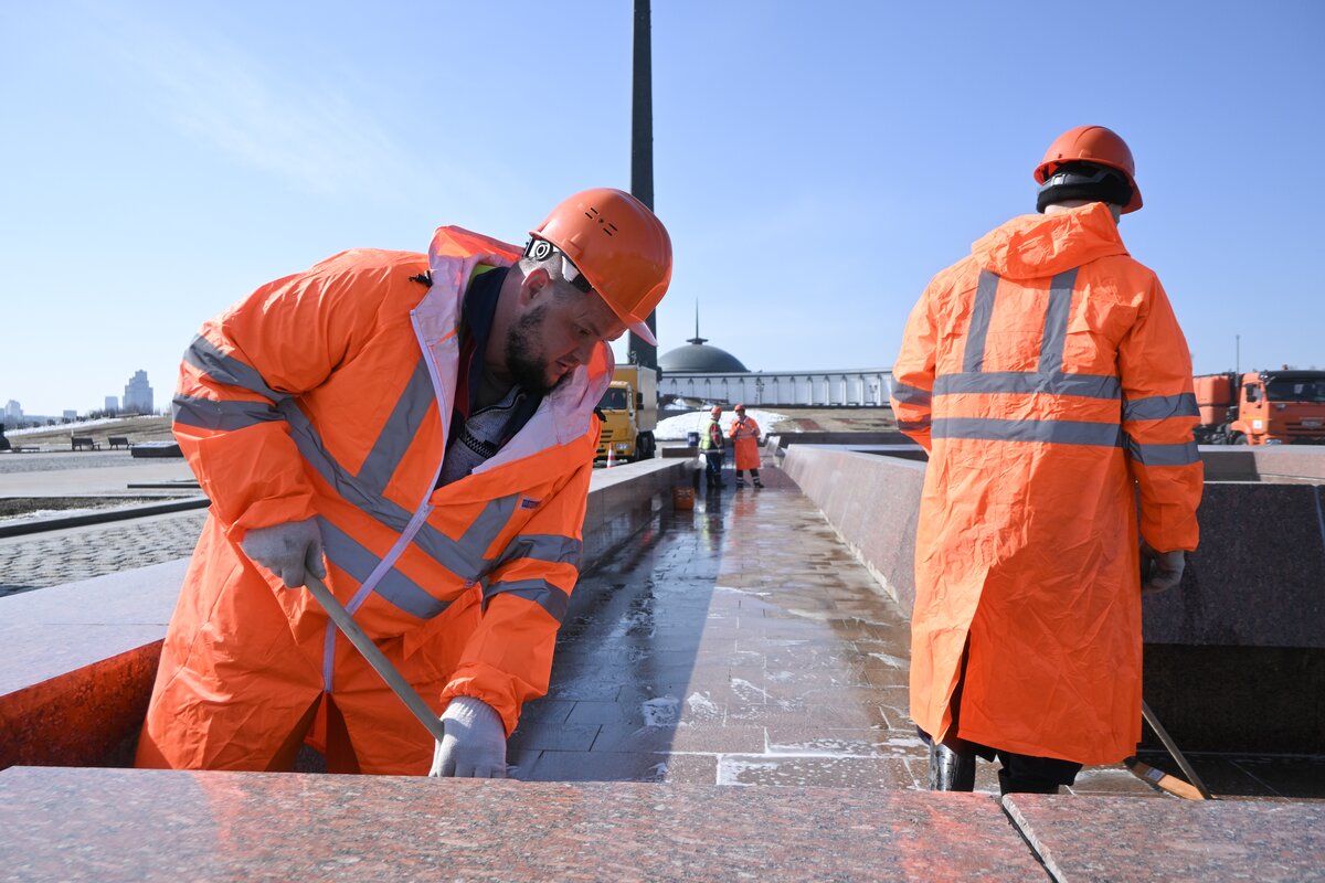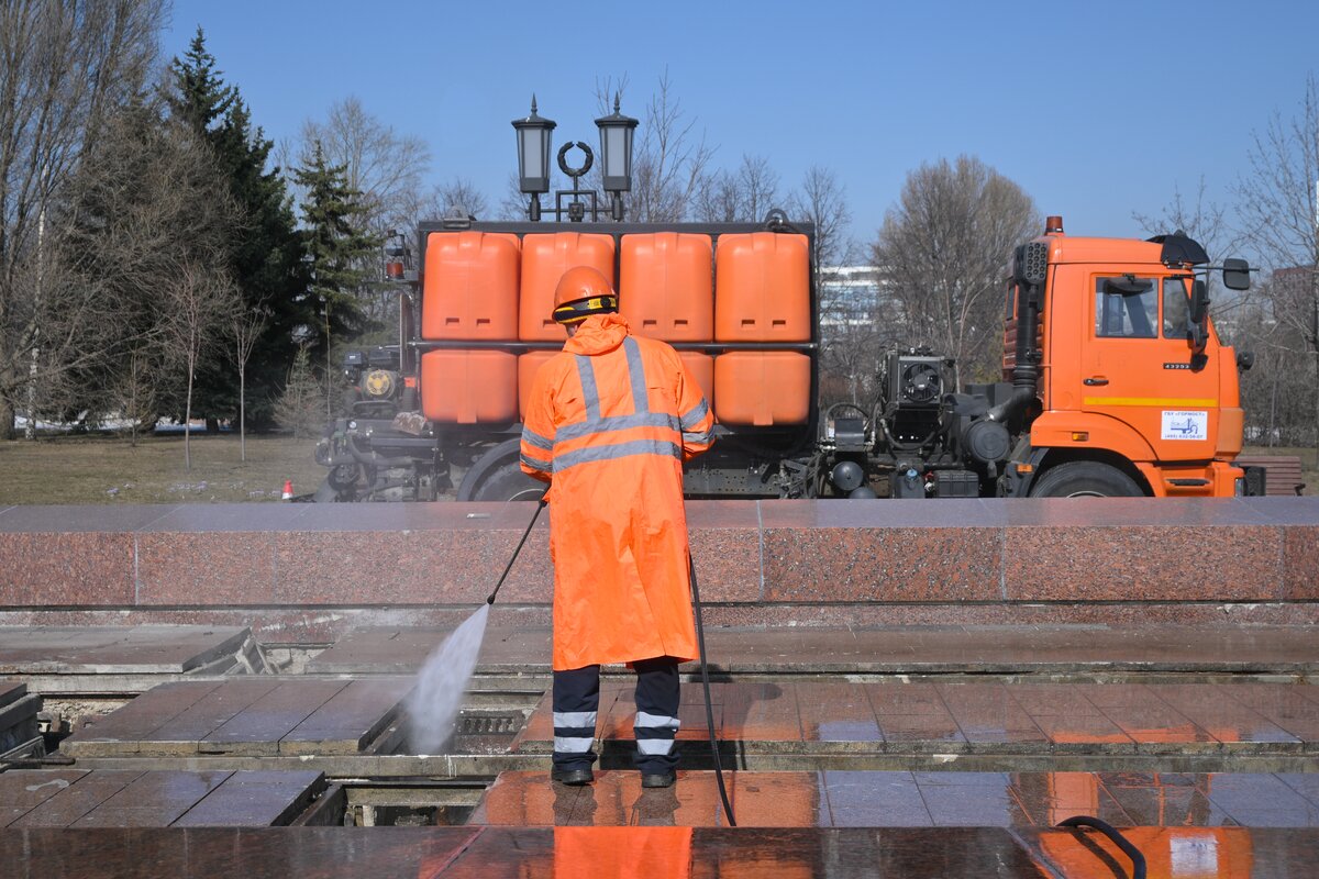 Специалисты очистят чаши, парапеты и наружные инженерные коммуникации специальными щетками, после чего промоют сооружение. В рамках подготовки к новому сезону на фонтан вернут демонтированные форсунки и подводные светильники.