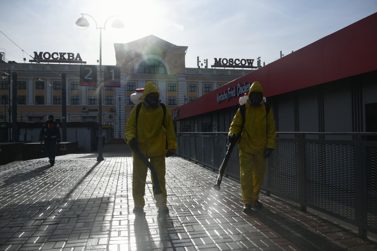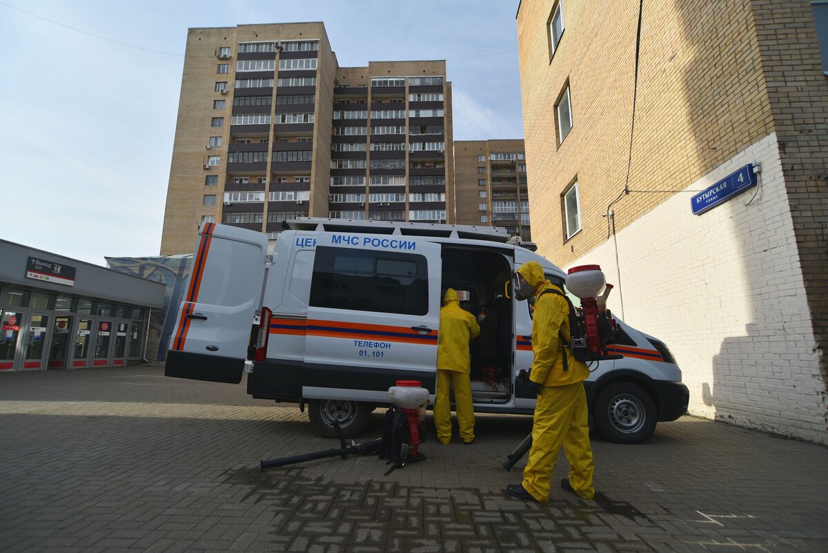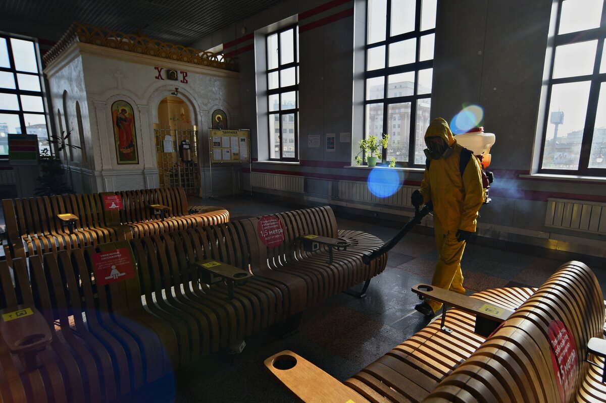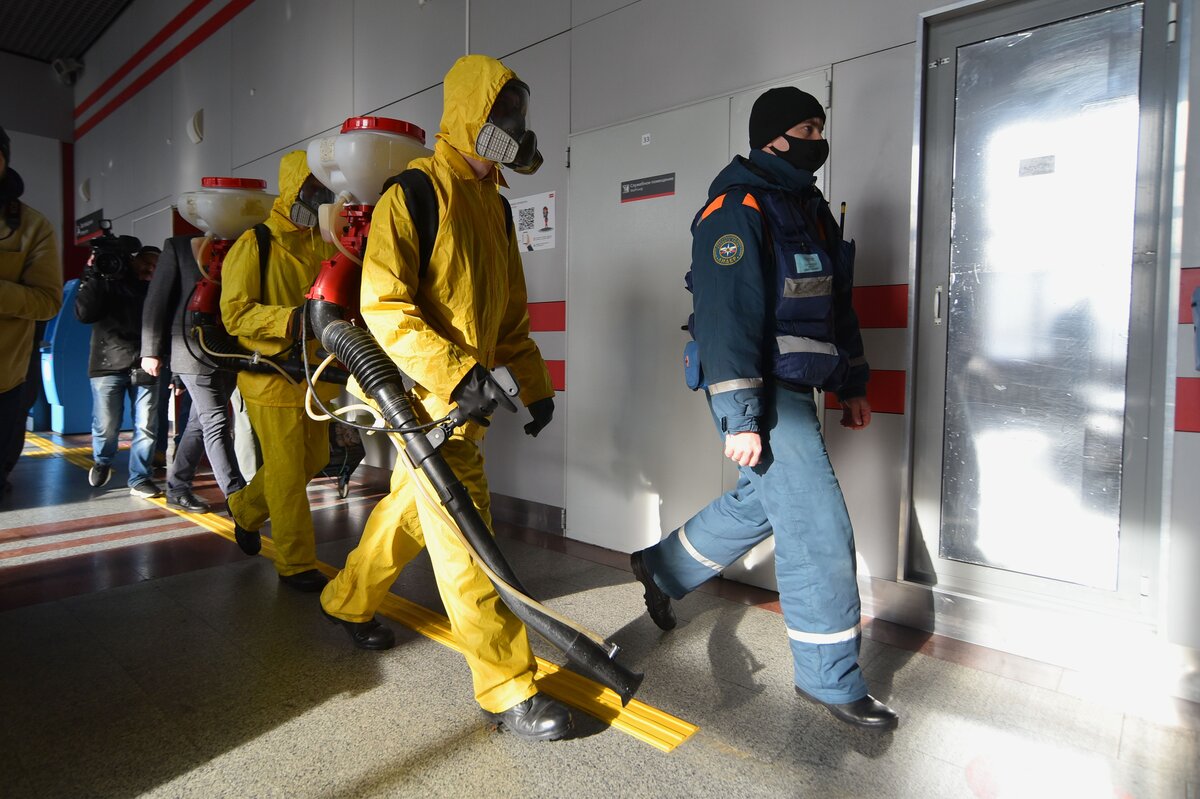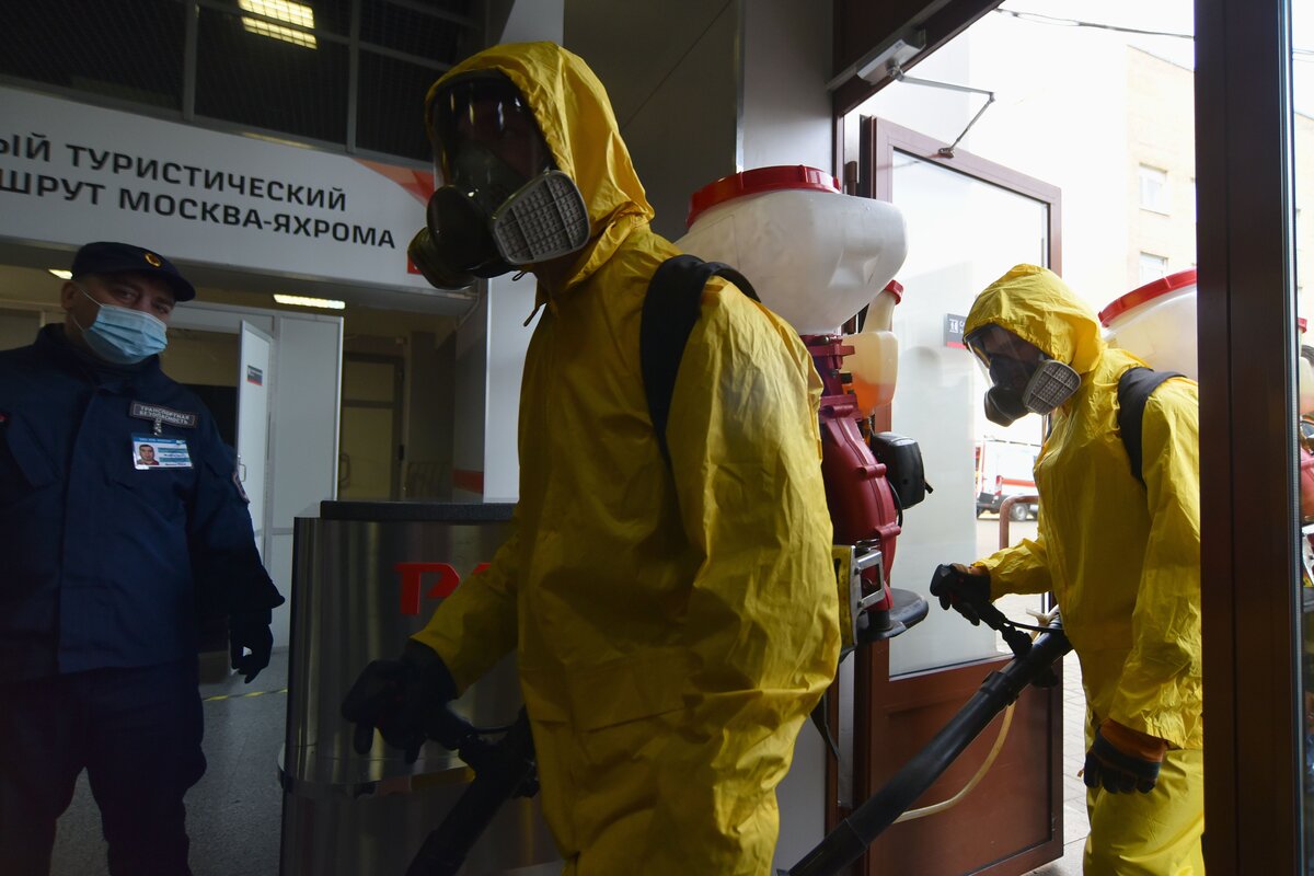 Во вторник, 26 октября, зрители Москвы онлайн могли понаблюдать за тем, как сотрудники Центра по проведению спасательных операций особого риска "Лидер" МЧС РФ дезинфицировали Савеловский вокзал.