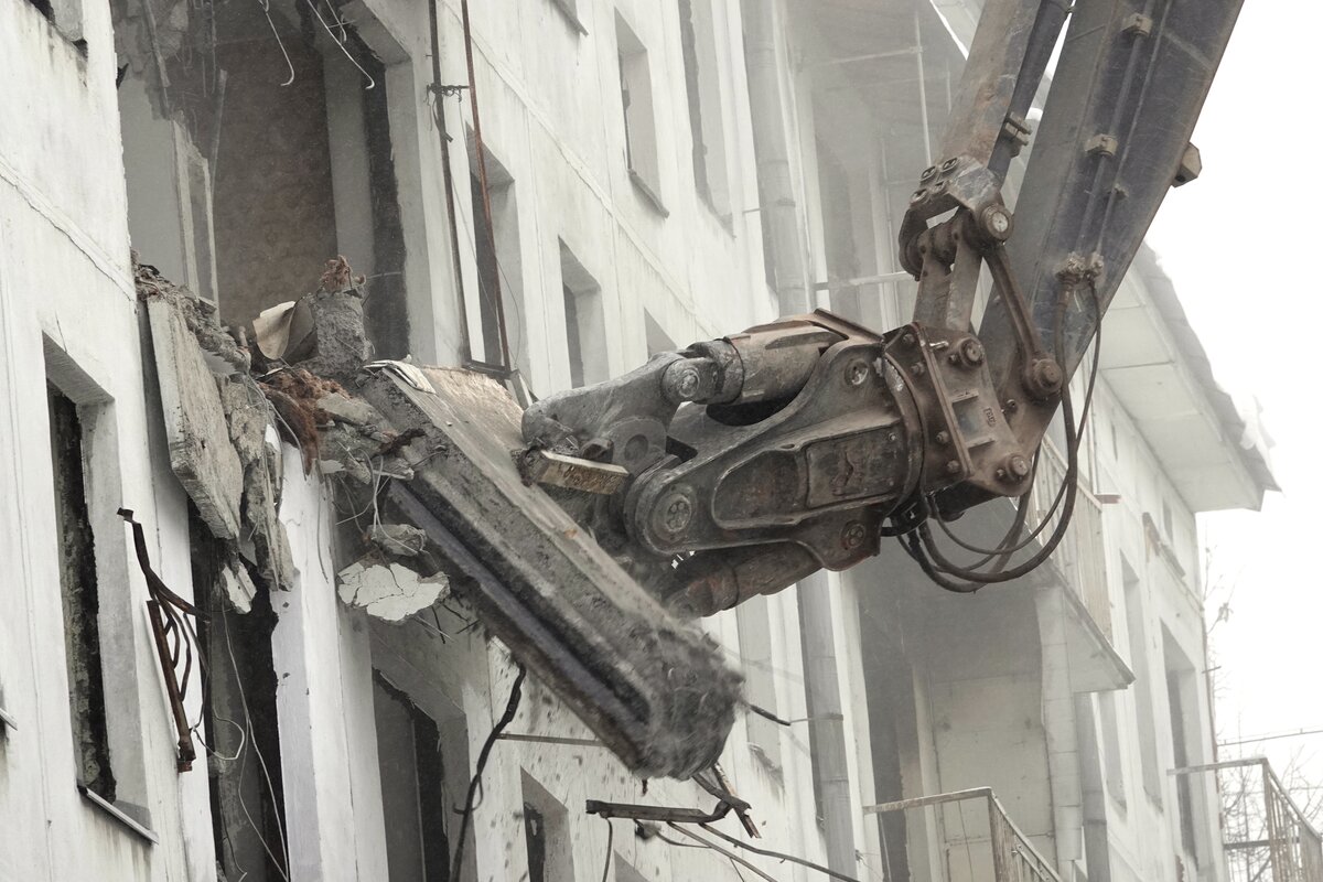 Жителей этого дома уже давно расселили, а теперь освобождают место для новых, современных и удобных домов 2/10Жителей этого дома уже давно расселили, а теперь освобождают место для новых, современных и удобных домов