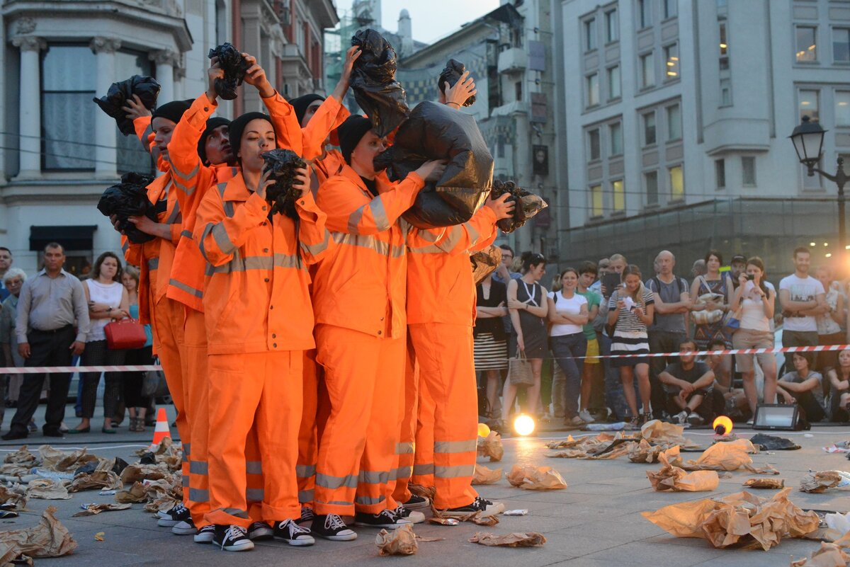 По словам авторов спектакля, они создают визуальное искусство и хореографию из процесса уборки территории и других действий, привычных для городской среды и напрямую не связанных с художественным существованием.
