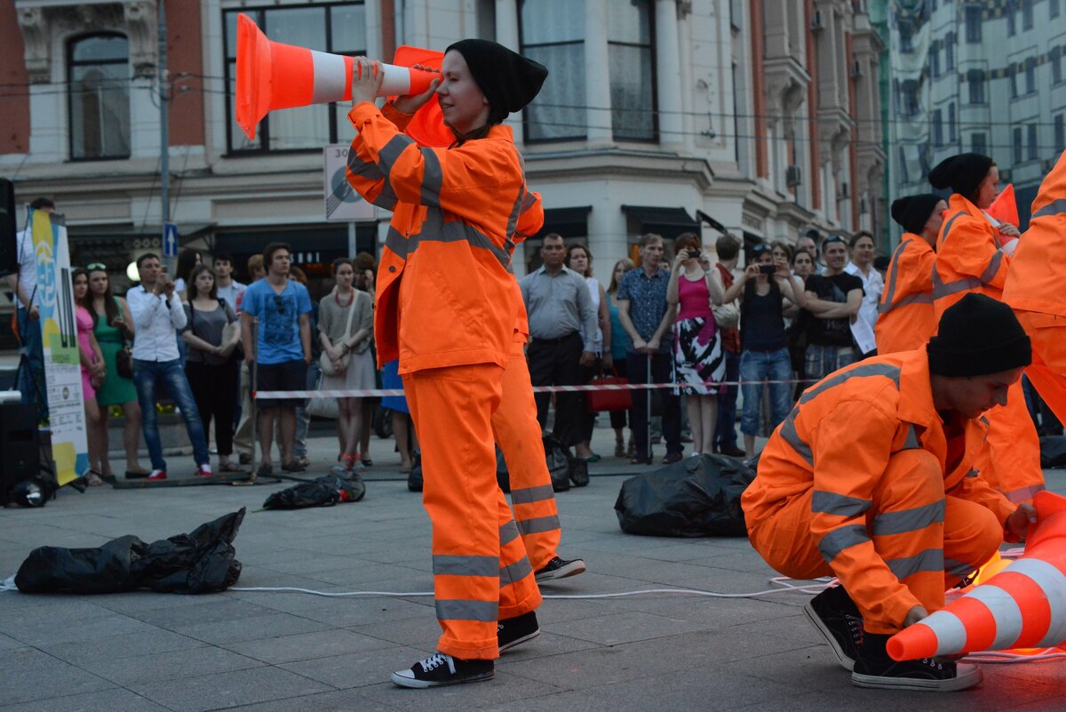 В Москве на пешеходных зонах в центре города прошли представления уличного театра. В течение трех дней режиссер Дмитрий Мелкин показывал спектакль "LOWTECH".
