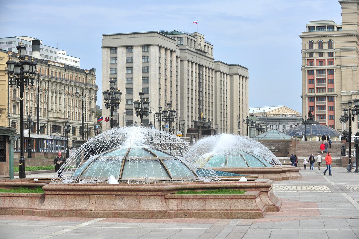 28 апреля вновь заработали столичные фонтаны. Они были запущены почти одновременно с разницей в полминуты.