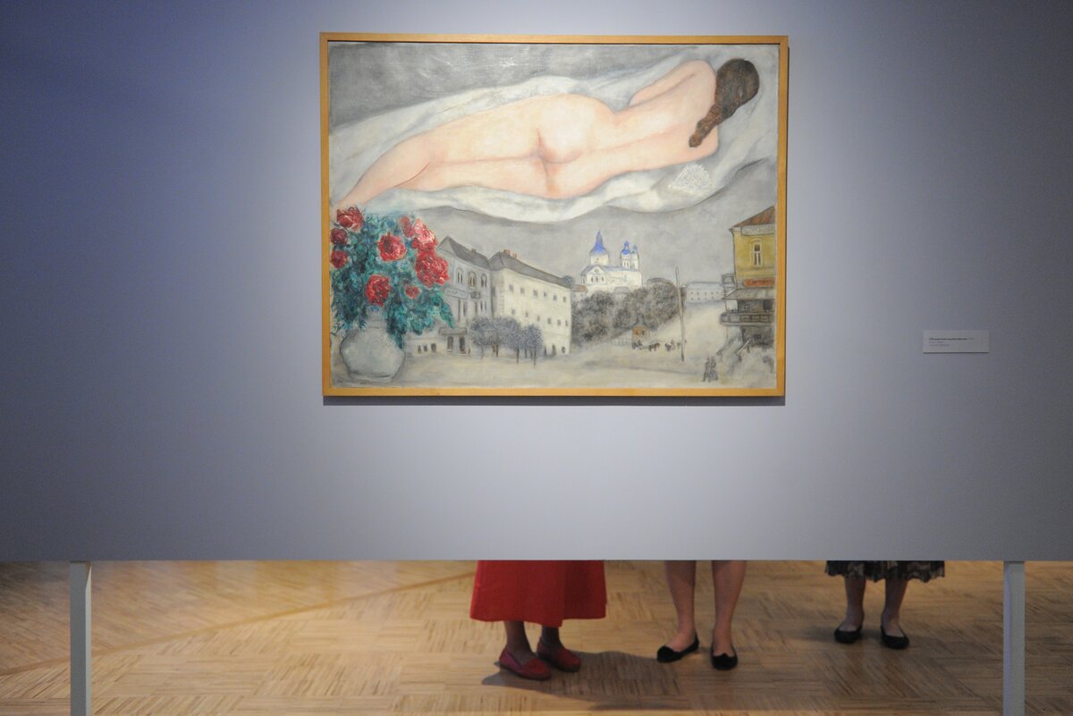 Картина "Обнаженная над Витебском", представленная на выставке "Марк Шагал. Истоки творческого языка художника" в Третьяковской галерее 7/13Картина "Обнаженная над Витебском", представленная на выставке "Марк Шагал. Истоки творческого языка художника" в Третьяковской галерее