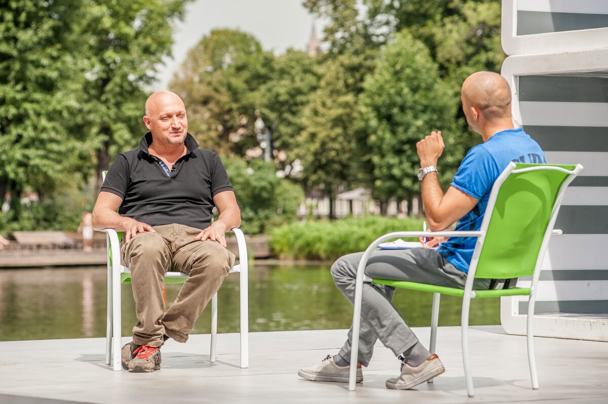 В парке Горького работает выездная летняя студия телеканала "Москва 24". Ее гостями 15 июля стали актер и музыкант Гоша Куценко, певица Татьяна Котова, певица Надежда Ручка, певица Виктория Пьер-Мари и актер Олег Масленников-Войтов.