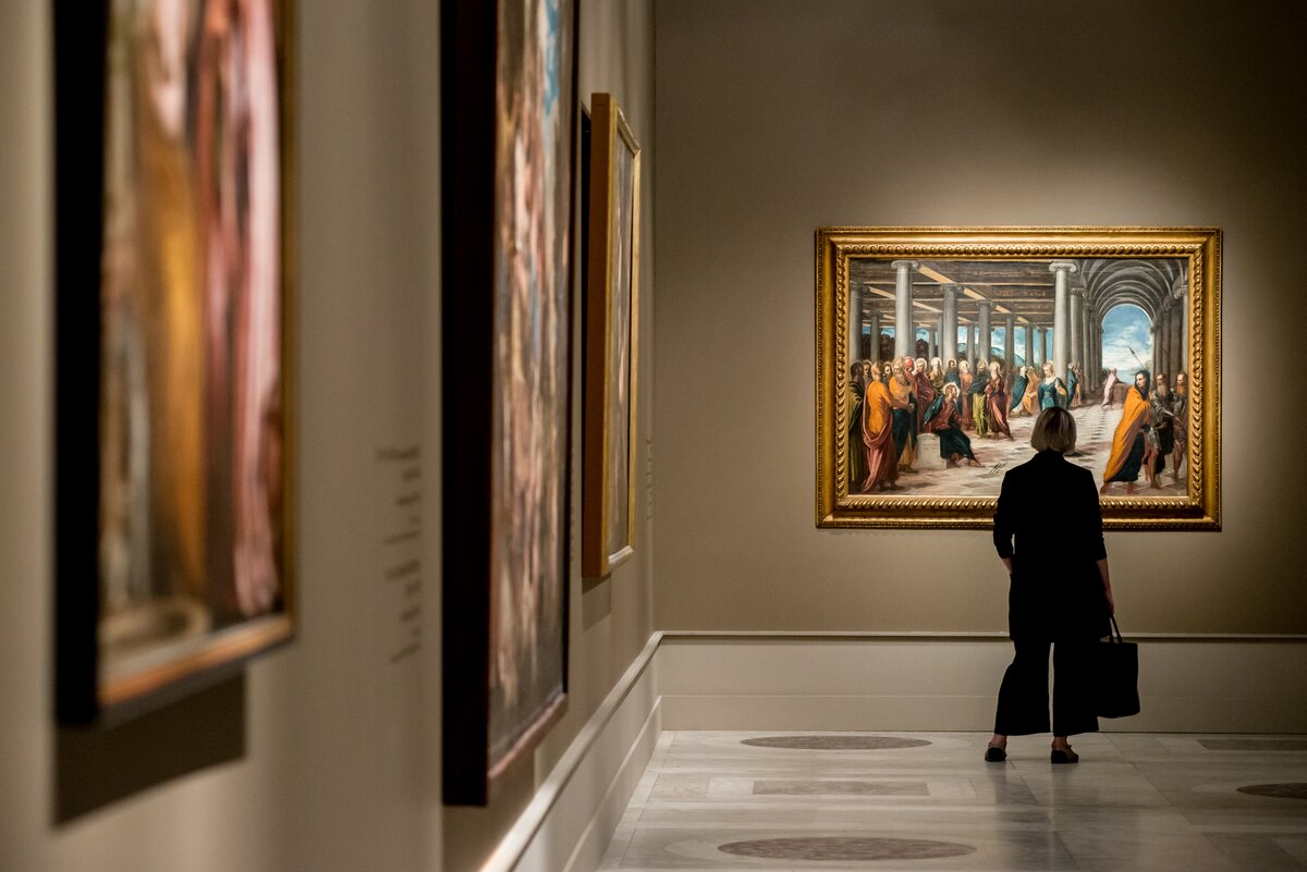 Триада величайших мастеров кисти – Тициан Вечеллио, Якопо Тинторетто и Паоло Веронезе сыграла определяющую роль в формировании европейской живописи. Их произведения служили примером для таких художников XVII столетия, как Веласкес, Рубенс, Рембрандт и Пуссен. Одна из важных тем, получивших отражение в концепции выставки, связана со взаимоотношениями великих венецианских мастеров Ренессанса.