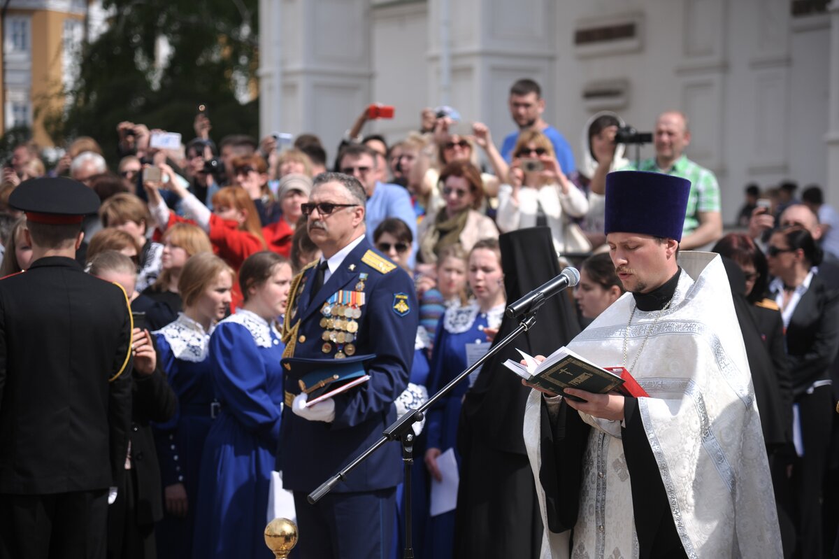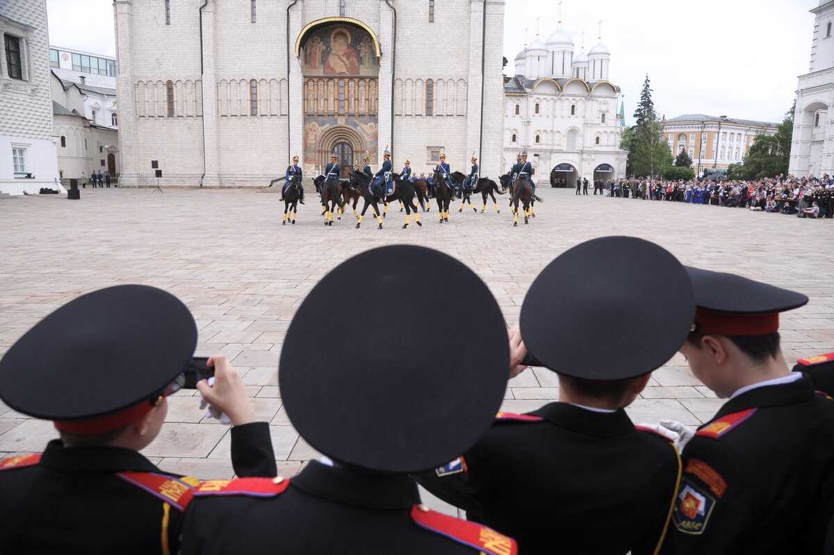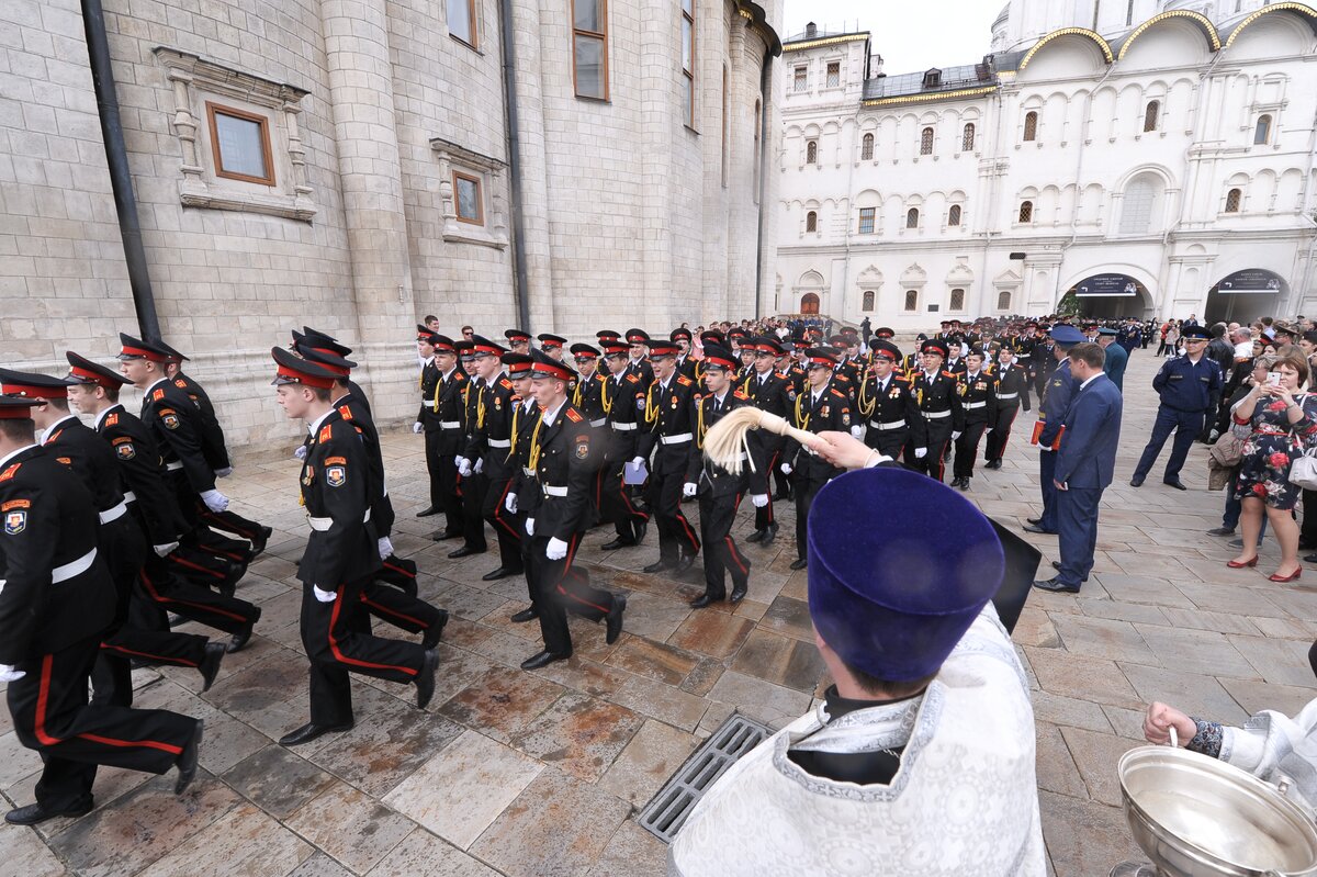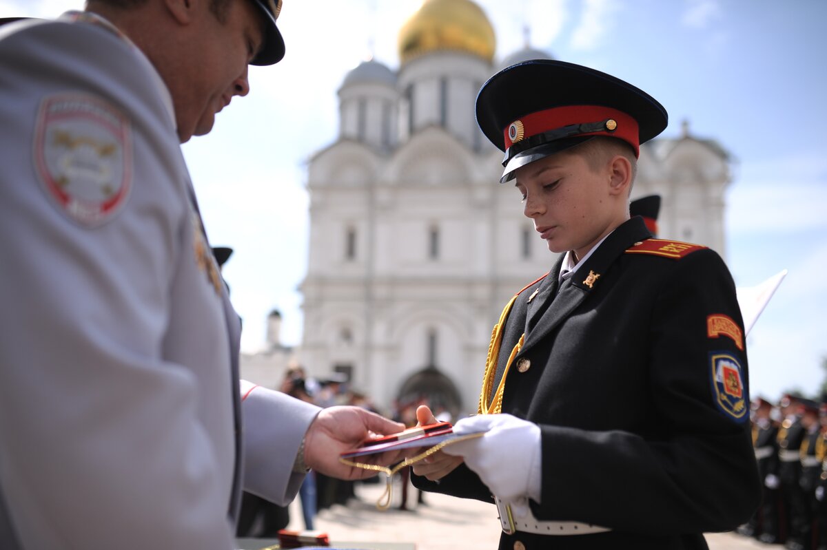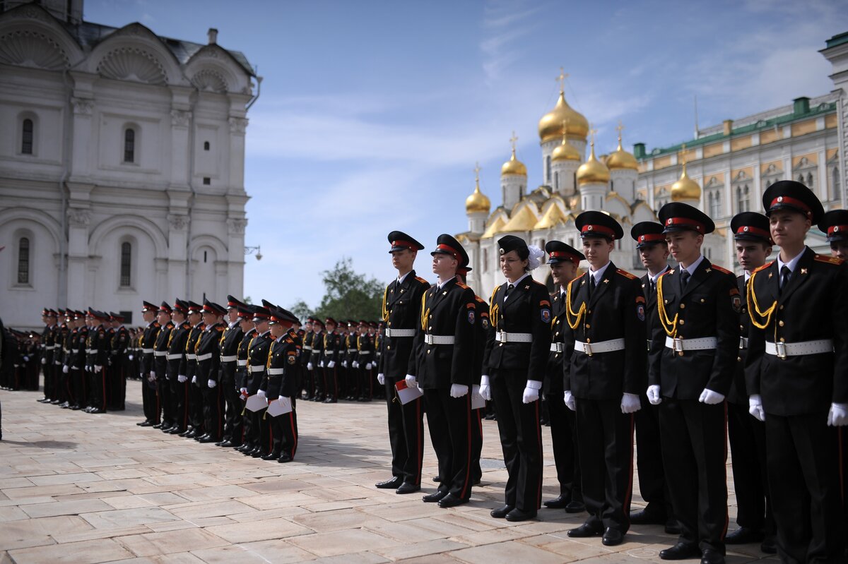 25 мая на Соборной площади Кремля состоялась торжественная церемония посвящения в кадеты воспитанников Первого Московского кадетского корпуса. Торжественное обещание дали 160 воспитанников.