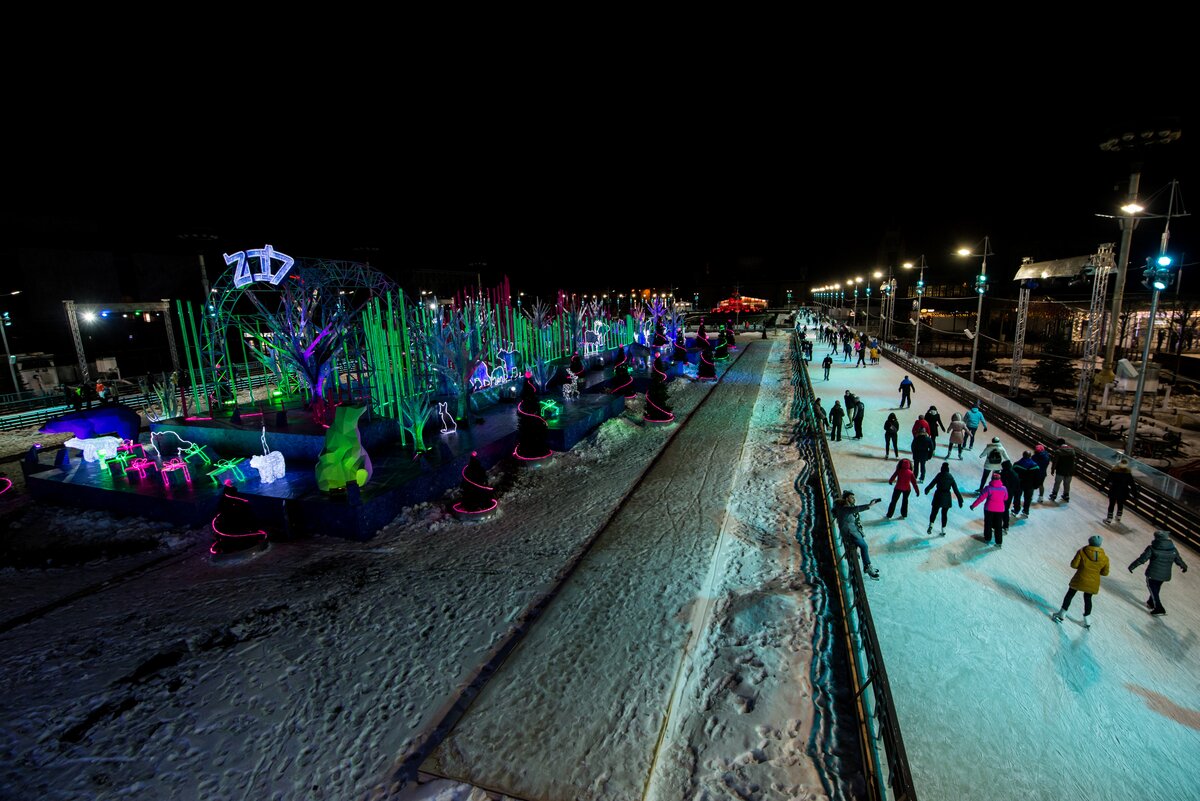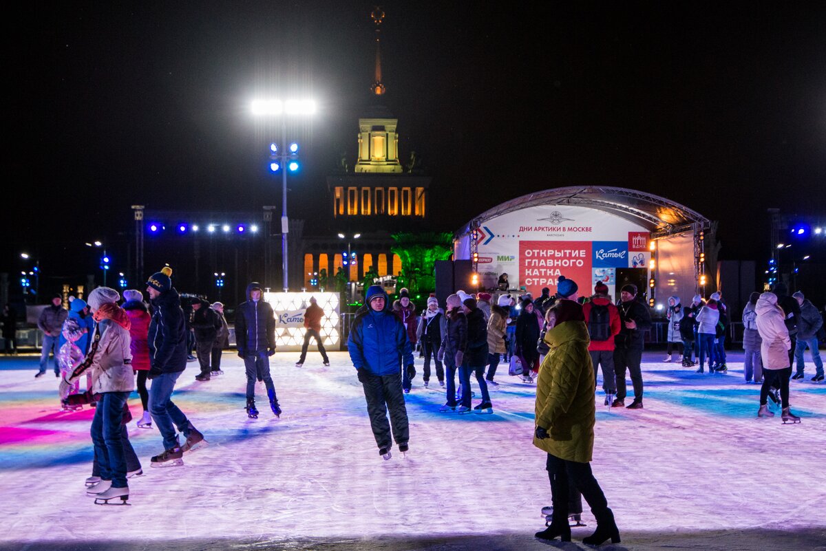 Каток на ВДНХ, Главный каток страны, открылся 27 ноября. Каток оформили в арктическом стиле – здесь можно увидеть северное сияние и фигурки полярных животных.