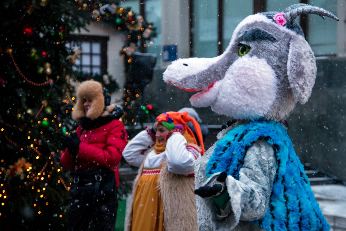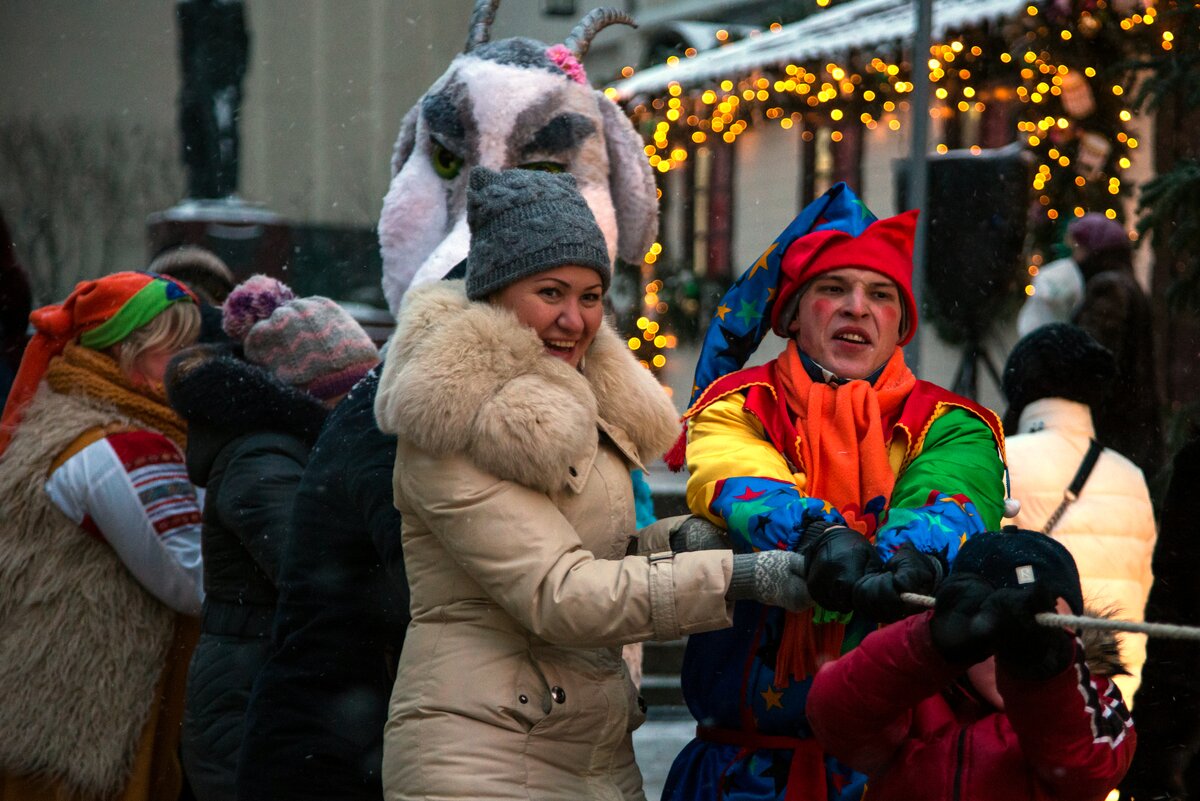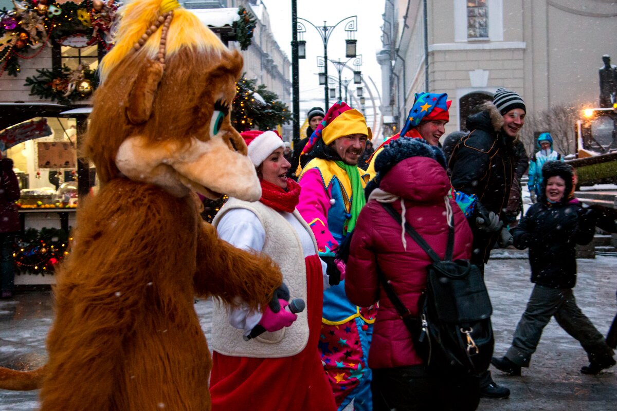 Гости фестиваля "Путешествие в Рождество" на площадке в Камергерском переулке 9 января смогли понаблюдать за колядующими. Заводилами в пестрой компании стали скоморохи, ряженые, петрушка, а также актеры в ростовых куклах медведя и быка. После Камергерского переулка колядующие отправились на Кузнецкий мост (площадь перед ЦУМом), а затем на Большую Дмитровку.