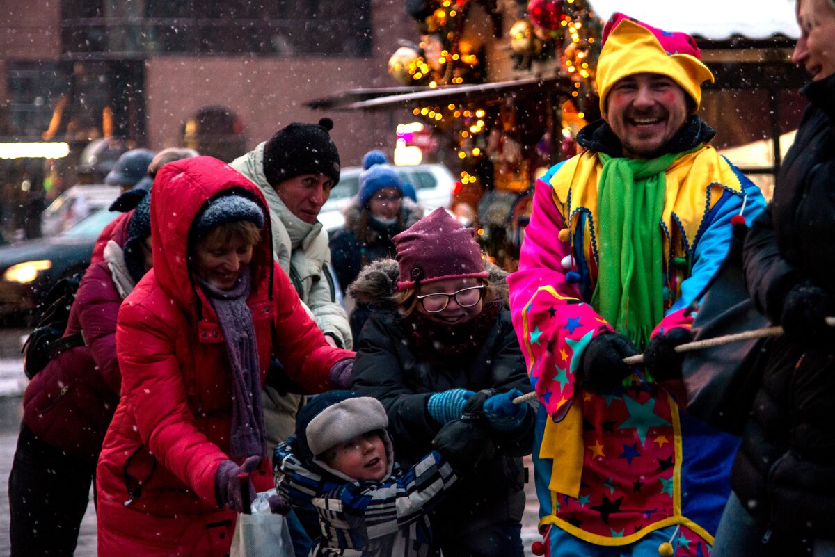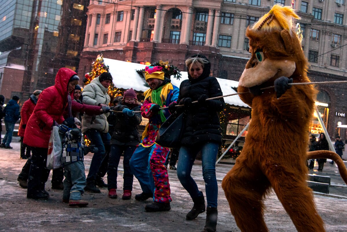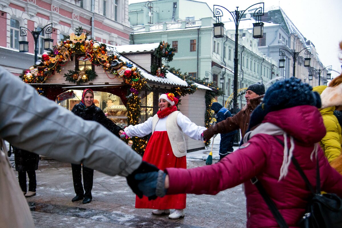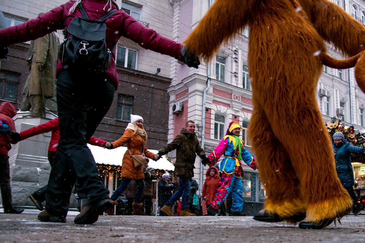 Гости фестиваля "Путешествие в Рождество" на площадке в Камергерском переулке 9 января смогли понаблюдать за колядующими. Заводилами в пестрой компании стали скоморохи, ряженые, петрушка, а также актеры в ростовых куклах медведя и быка. После Камергерского переулка колядующие отправились на Кузнецкий мост (площадь перед ЦУМом), а затем на Большую Дмитровку.